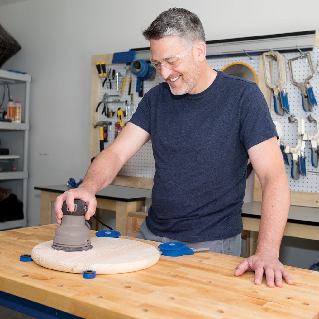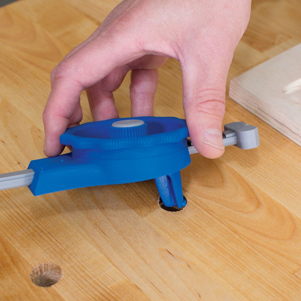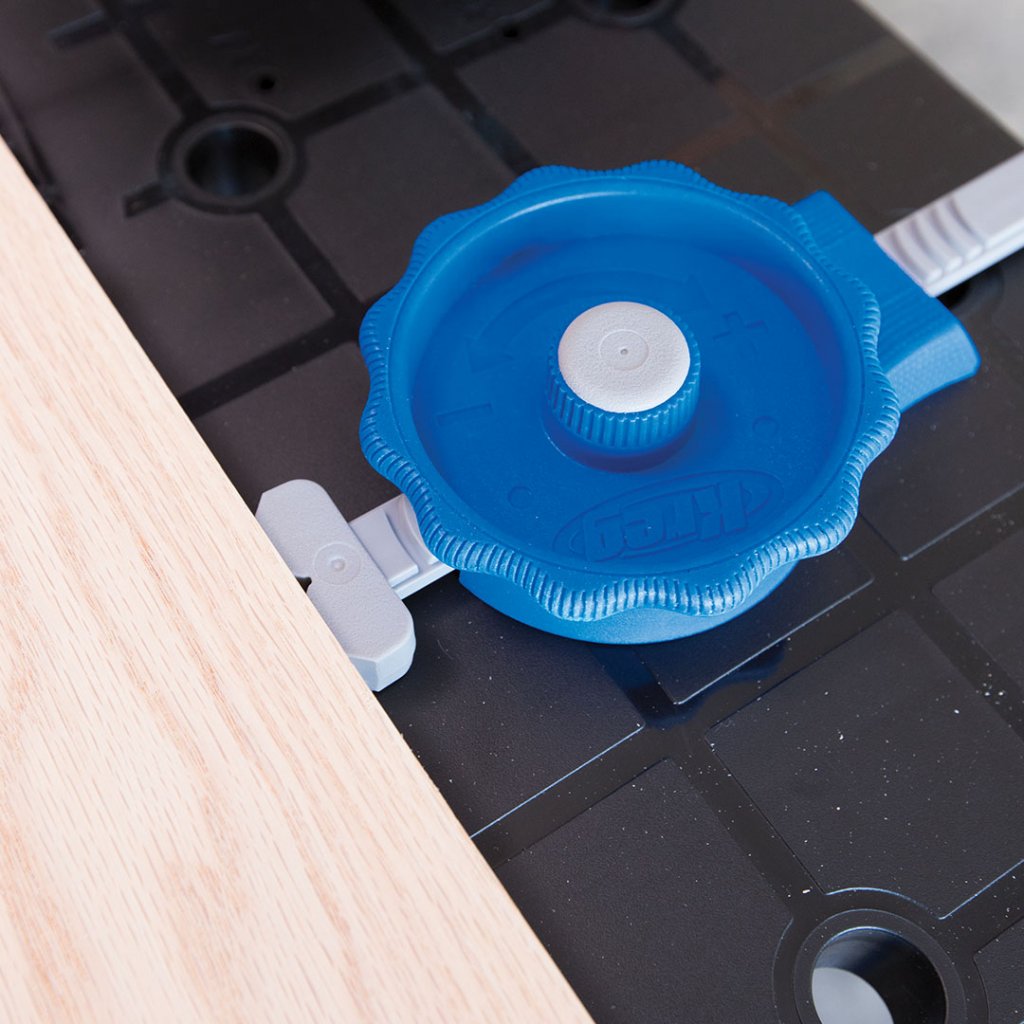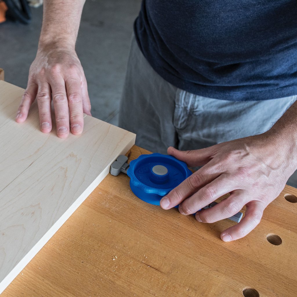 Tato svorka od firmy KREG® při práci rozhodně nepřekáží. Vyvíjí totiž tlak ze strany a nikoliv ze shora. Na spodní straně svorky je zápustka o průměru 19 mm do otovrů v pracovní desce. Otočná ropínací hlavice spolehlivě upne rovnou hranu i roh dřevěného přířezu. Můžete převážet kamkoliv, kde je potřeba. Výrobek je kompatibilní s našimi pracovními stoly TOUGHBUILT č. 6351 nebo s pracovní deskou BORA č. 2993. Upínací síla činí 113 Kg.