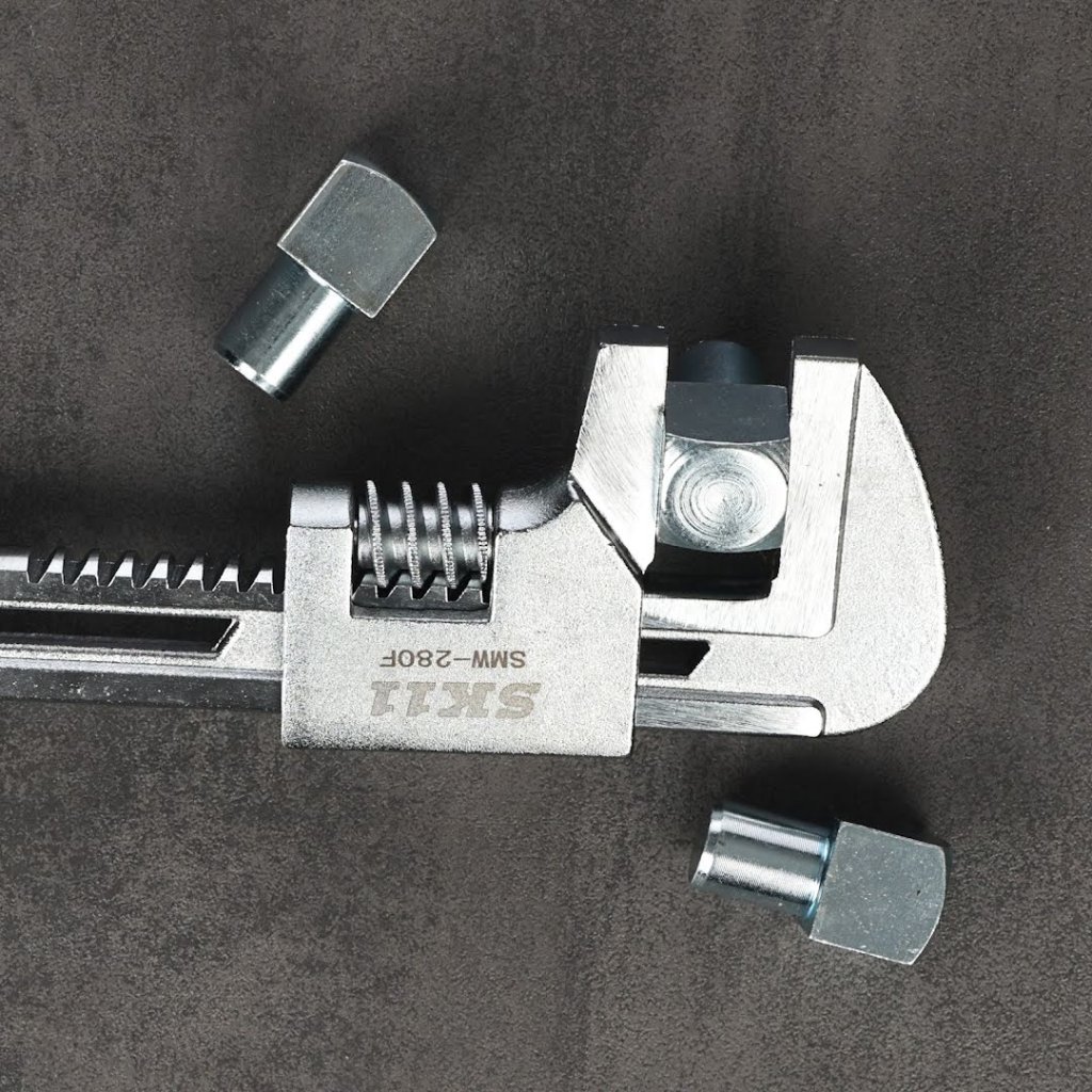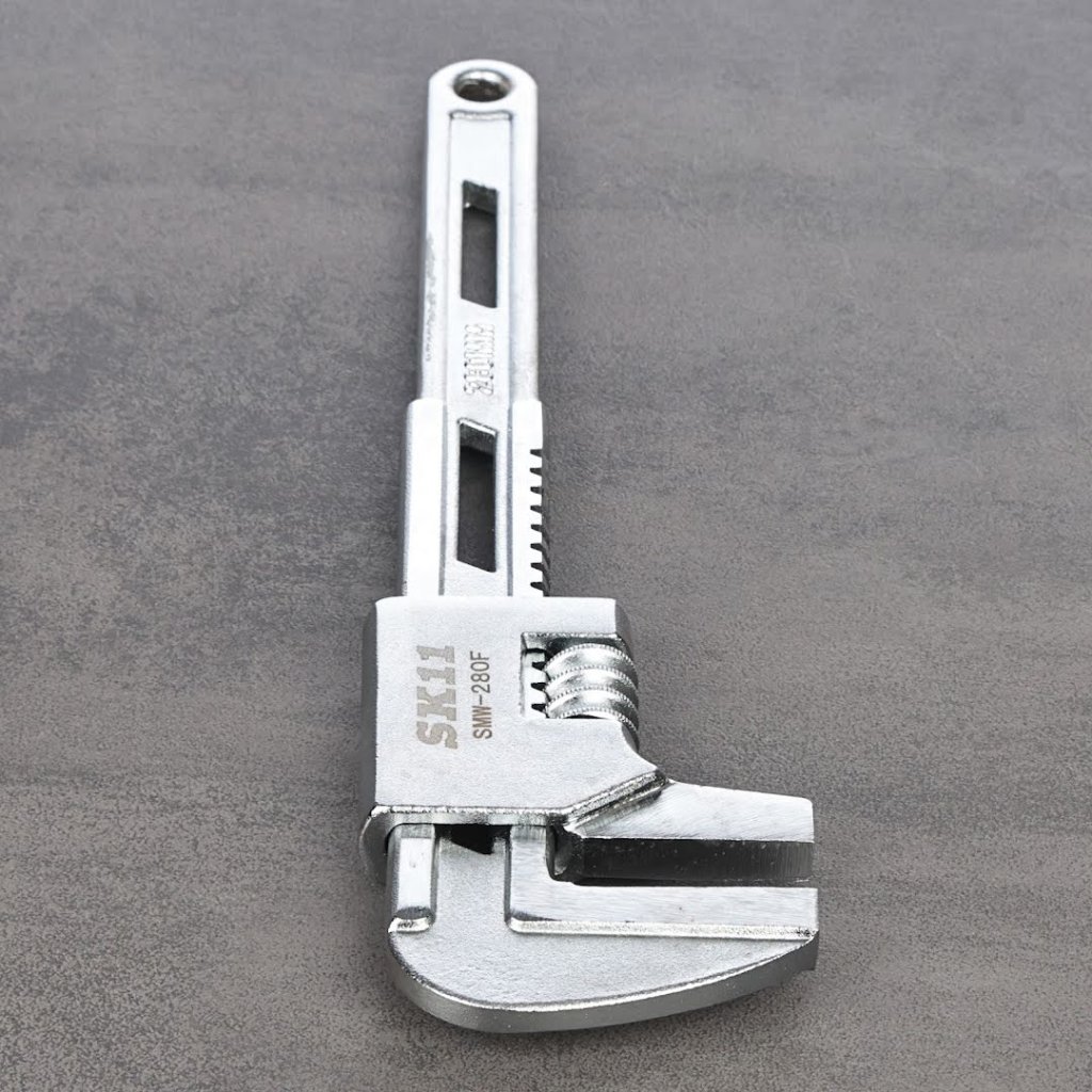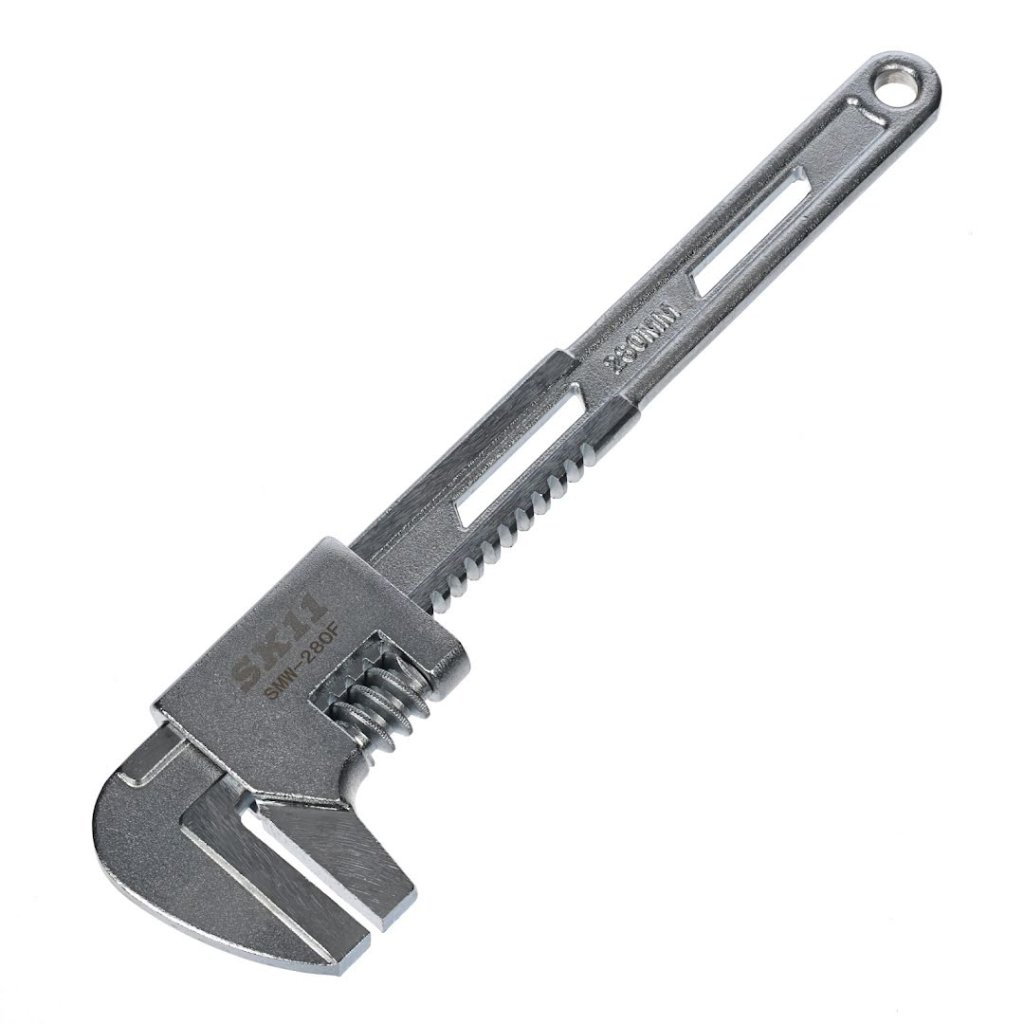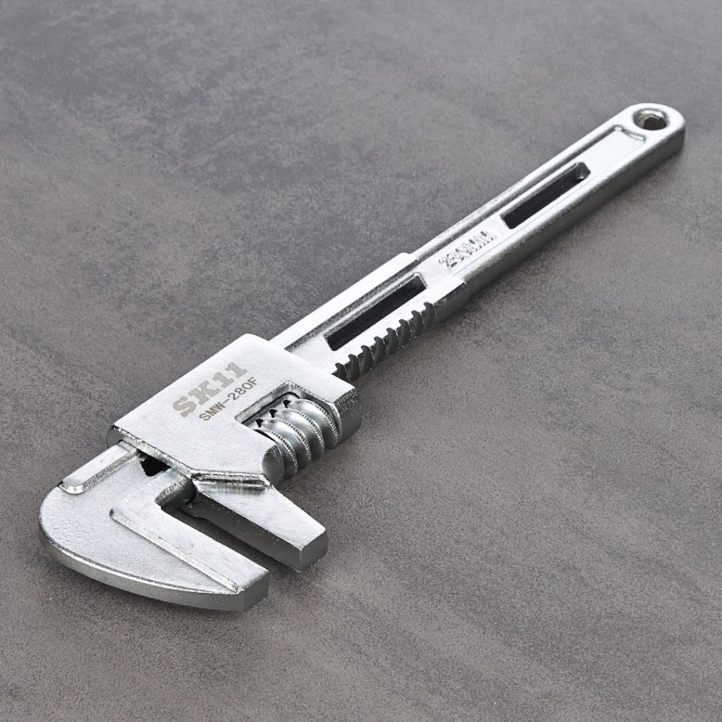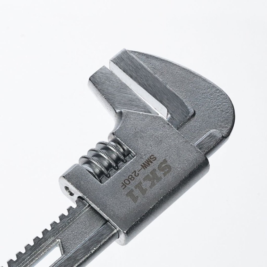 Klíč s nastavitelnými čelistmi SK11, SMW-280F, je navržen pro snadnou manipulaci s velkými maticemi a přípojkami. Tento všestranný nástroj je ideální pro utahování matic při instalaci potrubí a kohoutků. S čelistmi o šířce 75 mm umožňuje práci s velkými armaturami. S celkovou délkou 280 mm umožňuje snadný přístup do zapuštěných oblastí.