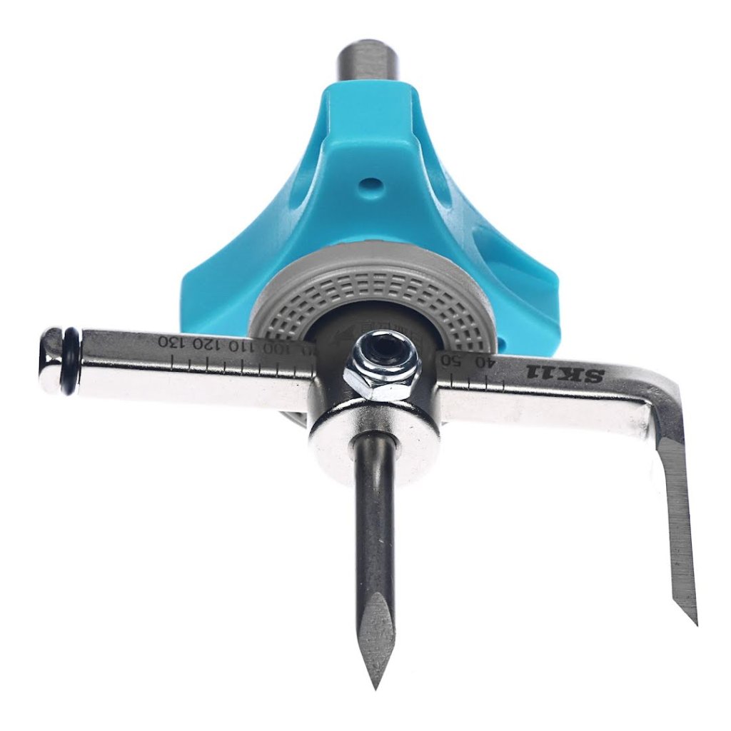 Nastavitelný vrták SK11, model SFC-130W-ATSU, je ideální pro vrtání otvorů do dřeva, sádrokartonu, plastu a gumy. Jeho originální tvar čepele snižuje odpor při vrtání a zajišťuje vynikající ostrost. Velká pryskyřičná rukojeť absorbuje nárazy a minimalizuje zasekávání. V případě zablokování jej lze rychle uvolnit pomocí klíče. Je vhodný pro akumulátorové vrtačky, elektrické vrtačky a stojanové vrtačky. Může vyřezávat otvory o průměru od 40 do 130 mm v materiálech do tloušťky 30 mm.