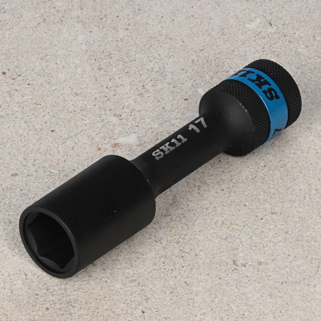 Nástrčná hlavice SK11 je odborně navržena pro použití s rázovými utahováky, což ji činí vhodnou pro utahování a povolování šroubů a matic s šestihrannou hlavou. Její odnímatelný pryskyřicový chránič zabraňuje poškrábání, zatímco rýhovaný design pomáhá při ručních úpravách. Tenkostěnná konstrukce umožňuje kompatibilitu s úzkými otvory pro matice na hliníkových kolech a barevně kódované velikosti zajišťují rychlou a snadnou identifikaci.