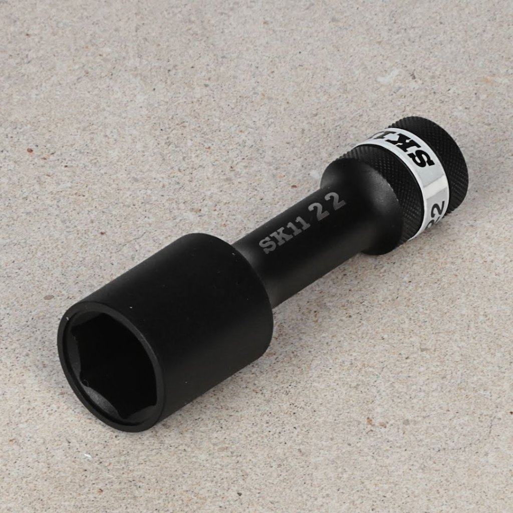 Nástrčná hlavice SK11 je odborně navržena pro použití s rázovými utahováky, což ji činí vhodnou pro utahování a povolování šroubů a matic s šestihrannou hlavou. Její odnímatelný pryskyřicový chránič zabraňuje poškrábání, zatímco rýhovaný design pomáhá při ručních úpravách. Tenkostěnná konstrukce umožňuje kompatibilitu s úzkými otvory pro matice na hliníkových kolech a barevně kódované velikosti zajišťují rychlou a snadnou identifikaci.