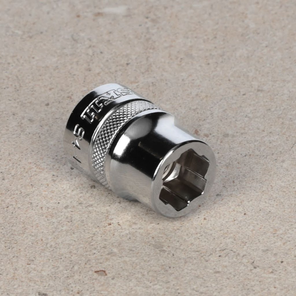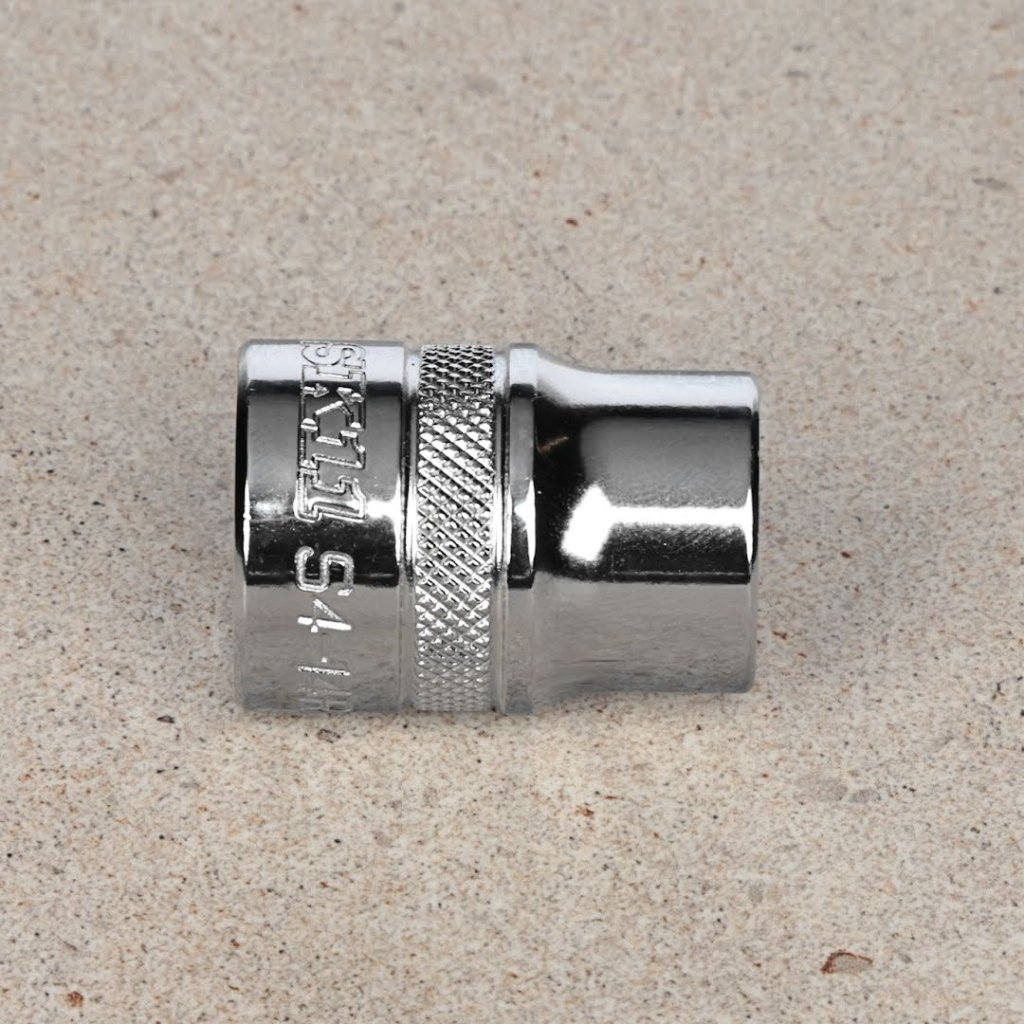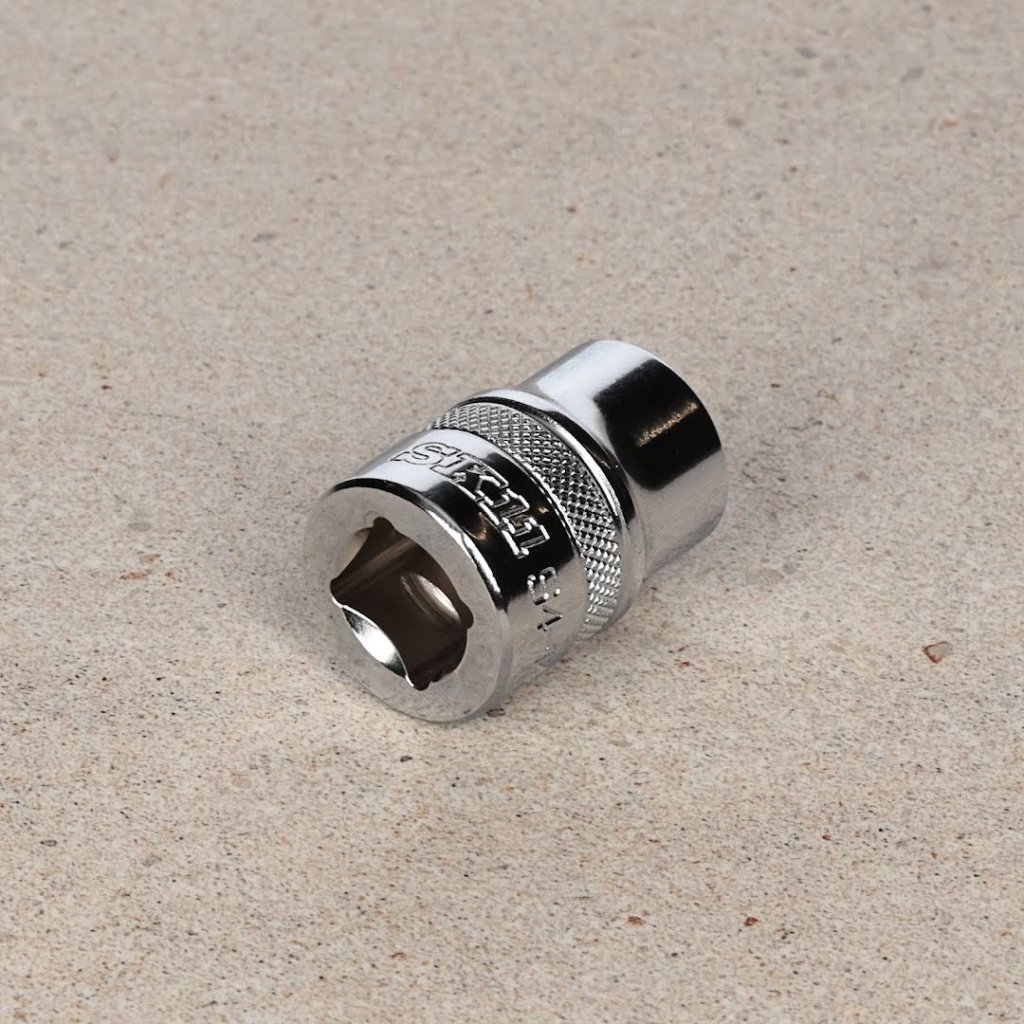 Nástrčný klíč (ořech) značky SK11 na odstranění šroubů, model S4-14RE, je všestranný nástroj pro efektivní manipulaci se zaoblenými a strženými šrouby. Tento speciálně tvarovaný nástavec disponuje čtvercovým upínáním o velikosti 12,7 mm a chromovanou povrchovou úpravou. Ideální pro utahování a povolování šroubů a matic.