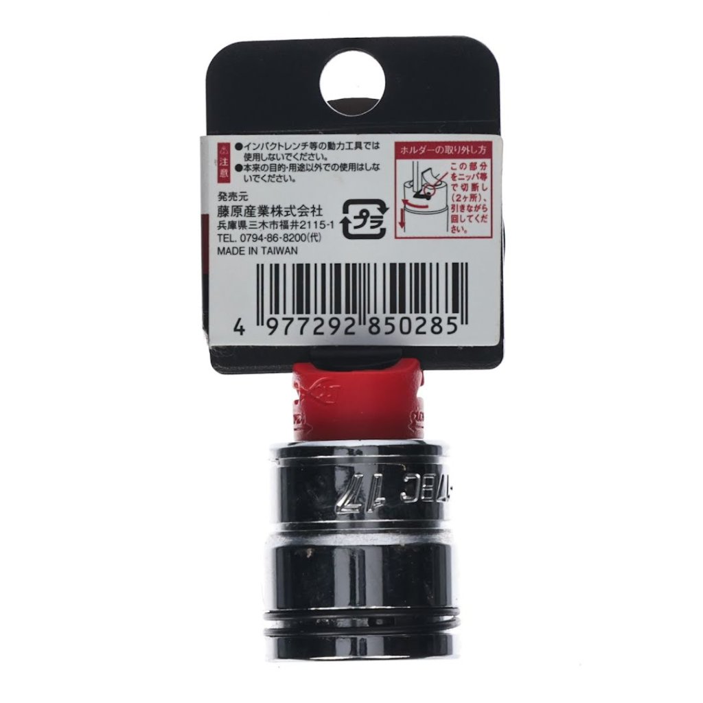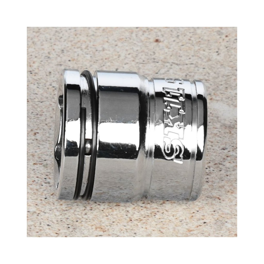 Nástrčný ořech na šrouby s pojistkou SK11, model S3-17BC, nabízí efektivní řešení pro zajištění šroubů a matic při utahování a povolování. Tato zásuvka má dvě zabudované ocelové kuličky a zajišťuje bezpečné uchopení, což je ideální pro použití v úzkých prostorech. Má 17 mm zásuvku s 9,5 mm upínáním a je navržena pro hladký, jednoruční provoz. Tento nástroj není vhodný pro použití s elektrickými nástroji.
