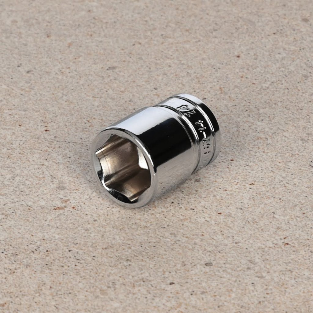 Šestihranná hlavice od značky SK11 o velikosti 14 mm, model S2-14, je vysoce kvalitní hlavice, která splňuje normy DIN a ANSI. Má upínání o velikosti 6,35 mm (1/4 palce) a je ideální pro utahování a povolování šroubů a matic s šestihrannou hlavou.