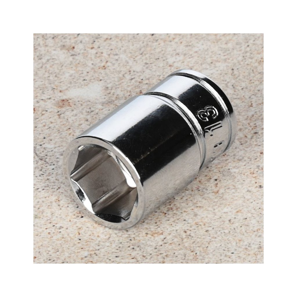Šestihranný nástrčný klíč SK11 s 9,5 mm upínáním, model S3-13, je vysoce kvalitní nástavec, který splňuje normy DIN a ANSI. Navržen pro utahování a povolování šestihranných šroubů a matic, disponuje upínáním 3/8 palce a velikostí 13 mm.