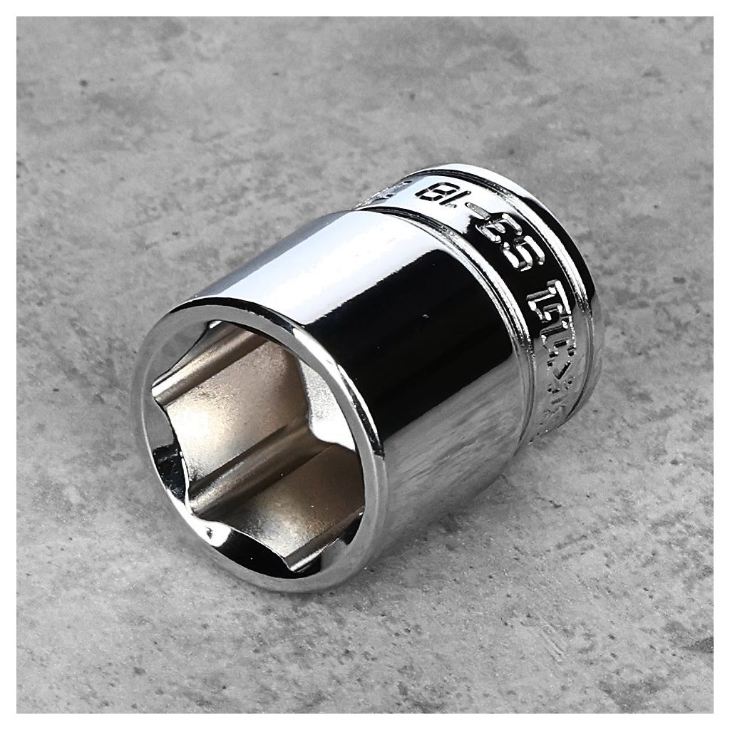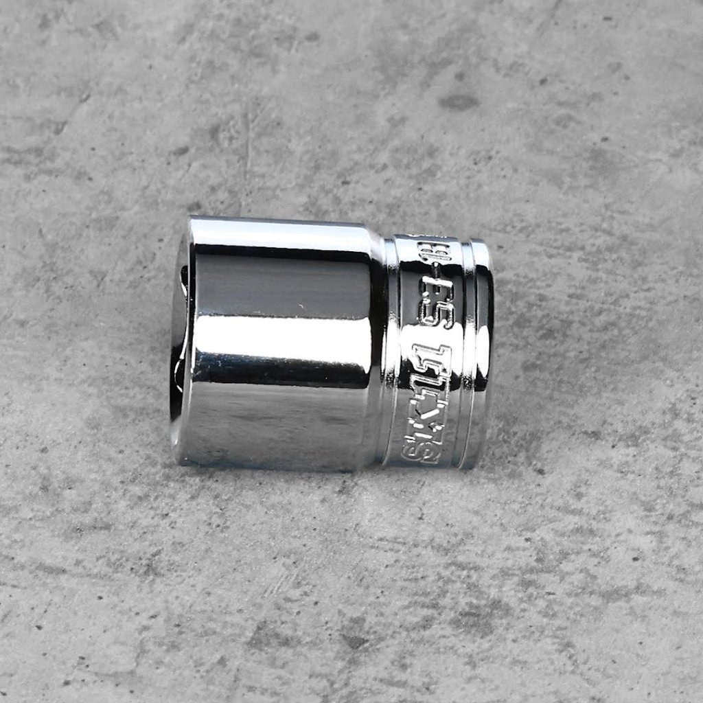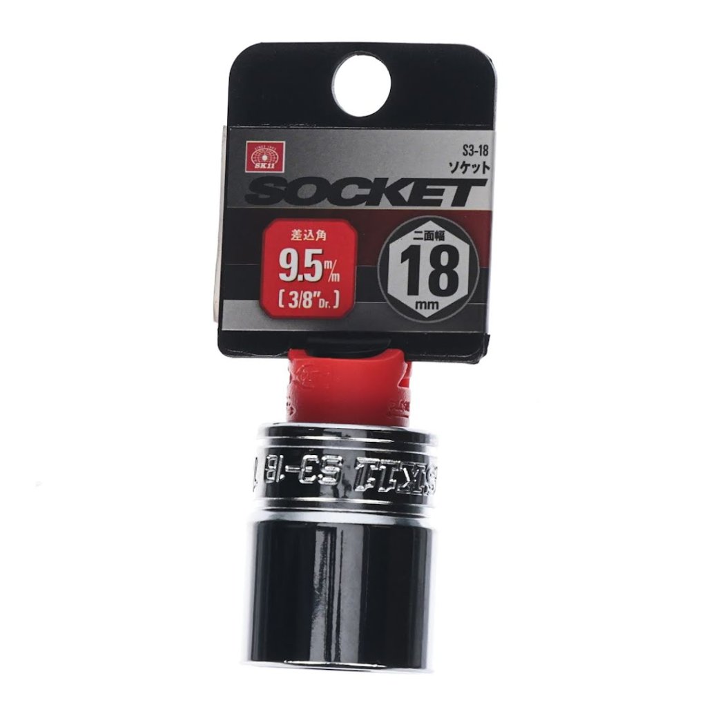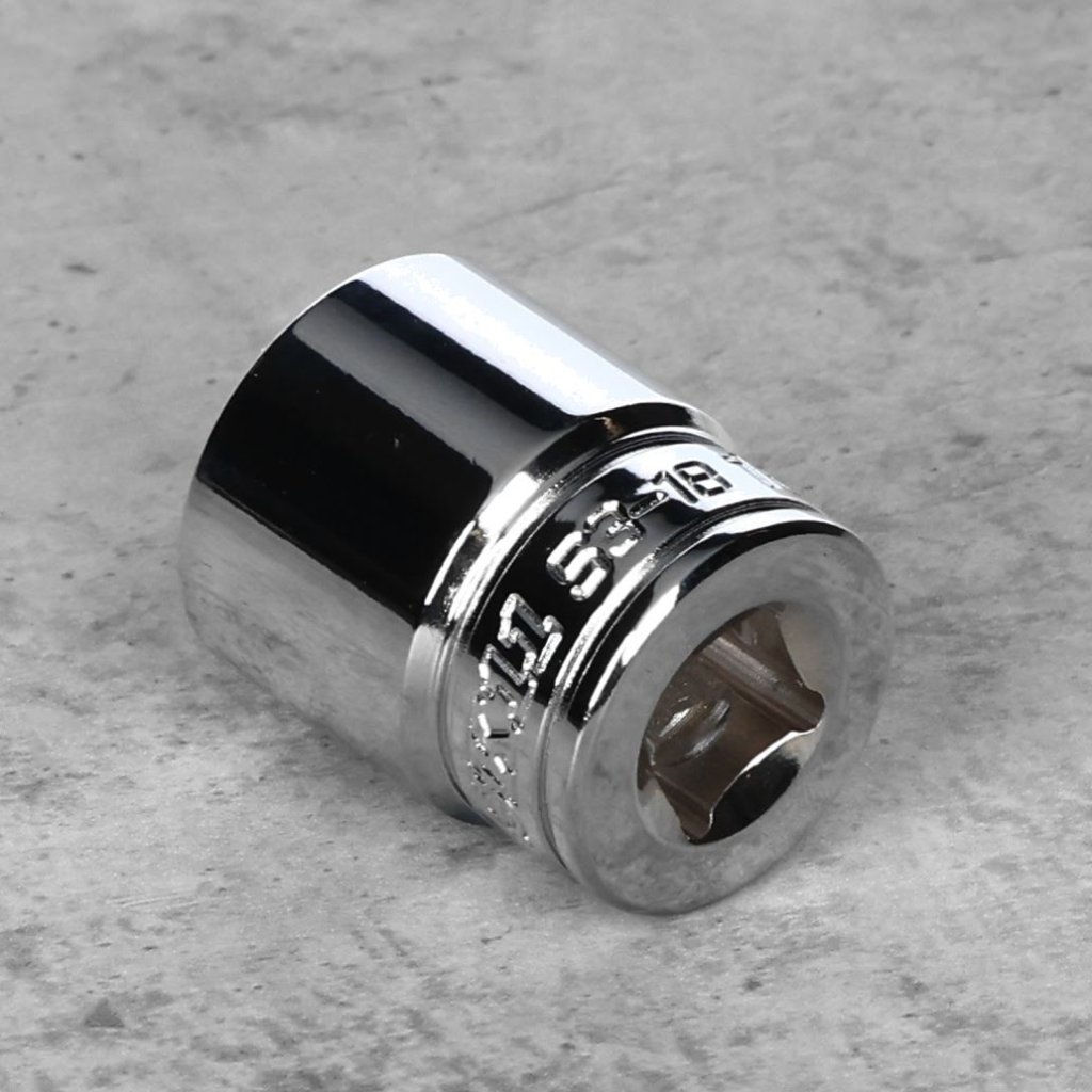 Šestihranná hlavice od značky SK11 s 9,5 mm upínáním, model S3-18, je vysoce kvalitní hlavice, která splňuje normy DIN a ANSI. Má velikost upínání 9,5 mm (3/8 palce) a šířku mezi plochami 18 mm, což ji činí ideální pro utahování a povolování šestihranných šroubů a matic.