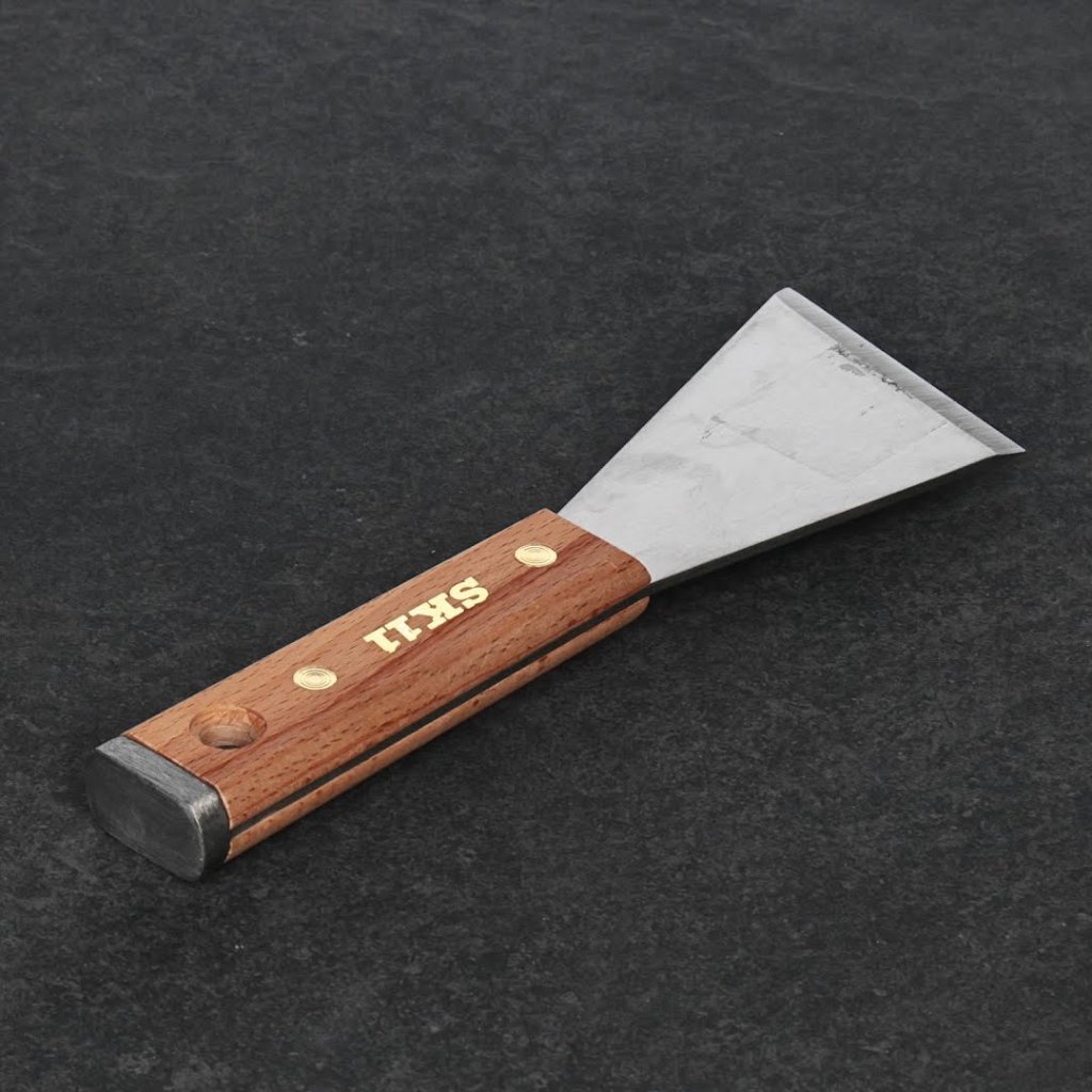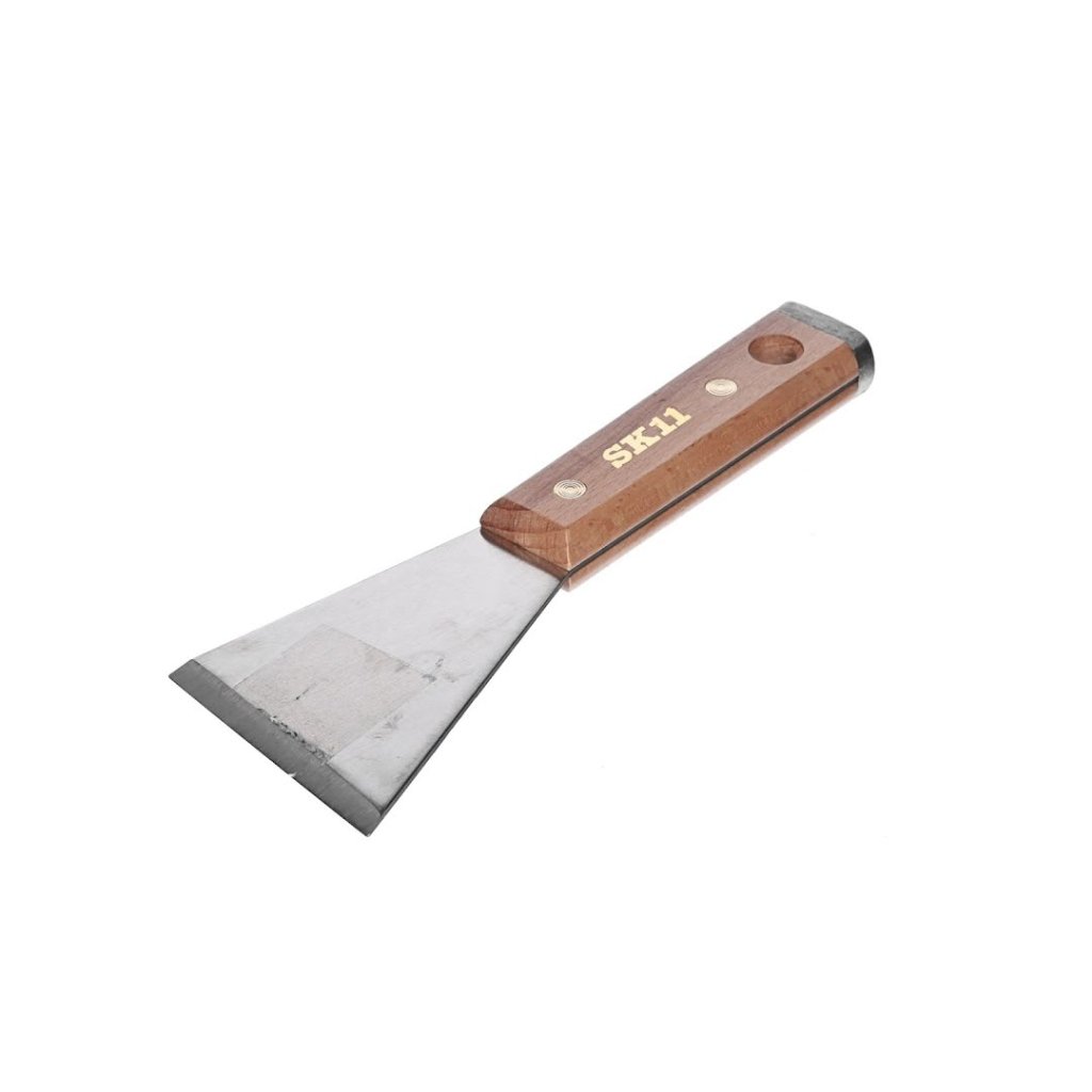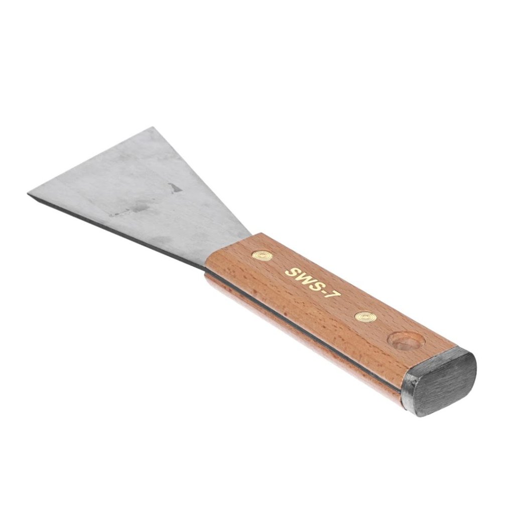 Nerezová špachtle SK11 s plnou stopkou, model SWS-7, je univerzální nástroj pro odstraňování plastových dlaždic, barvy, rzi a špíny. Její nerezová čepel odolává korozi a je snadná na údržbu, což zajišťuje dlouhou životnost a spolehlivost. Její dřevěná rukojeť poskytuje pohodlný úchop, zatímco design s plnou stopkou umožňuje úder kladivem pro zvýšení síly. S čepelí širokou 65 mm a jedinečným tvarem Y je tento nástroj navržen pro efektivitu v náročných aplikacích.
