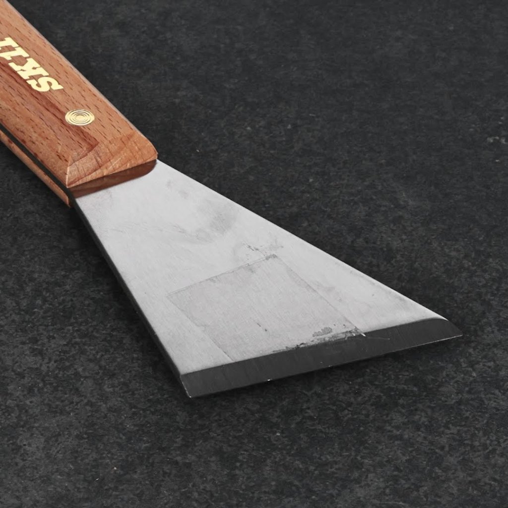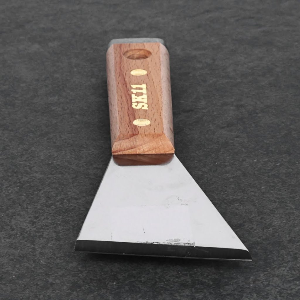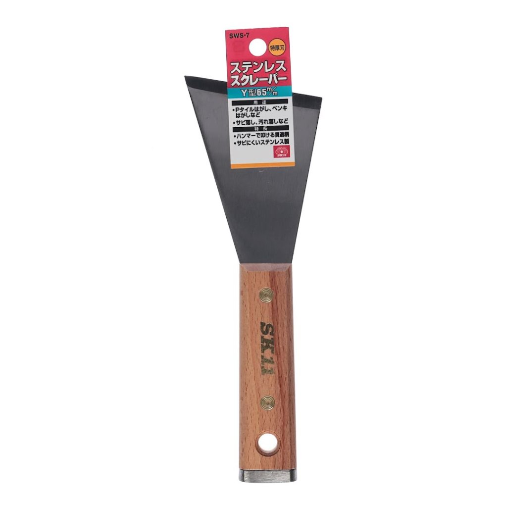 Nerezová špachtle SK11 s plnou stopkou, model SWS-7, je univerzální nástroj pro odstraňování plastových dlaždic, barvy, rzi a špíny. Její nerezová čepel odolává korozi a je snadná na údržbu, což zajišťuje dlouhou životnost a spolehlivost. Její dřevěná rukojeť poskytuje pohodlný úchop, zatímco design s plnou stopkou umožňuje úder kladivem pro zvýšení síly. S čepelí širokou 65 mm a jedinečným tvarem Y je tento nástroj navržen pro efektivitu v náročných aplikacích.