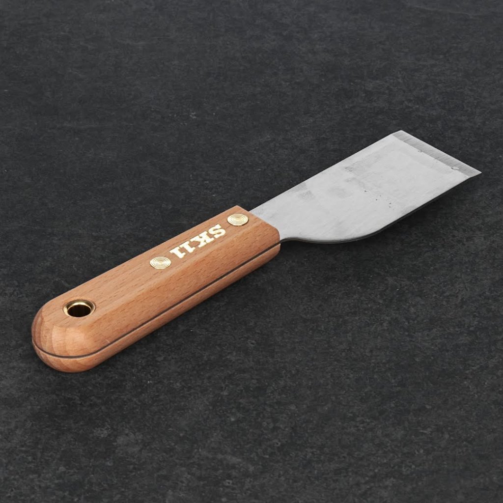 Nerezová špachtle SK11, model SWS-6, je nezbytná pro nadšence do kutilství. Její 42 mm nerezová čepel nabízí snadnou údržbu a je odolná proti korozi. Nástroj je ideální pro odstraňování barvy, rzi a nečistot. Ergonomicky navržená dřevěná rukojeť zajišťuje pohodlný úchop během používání.