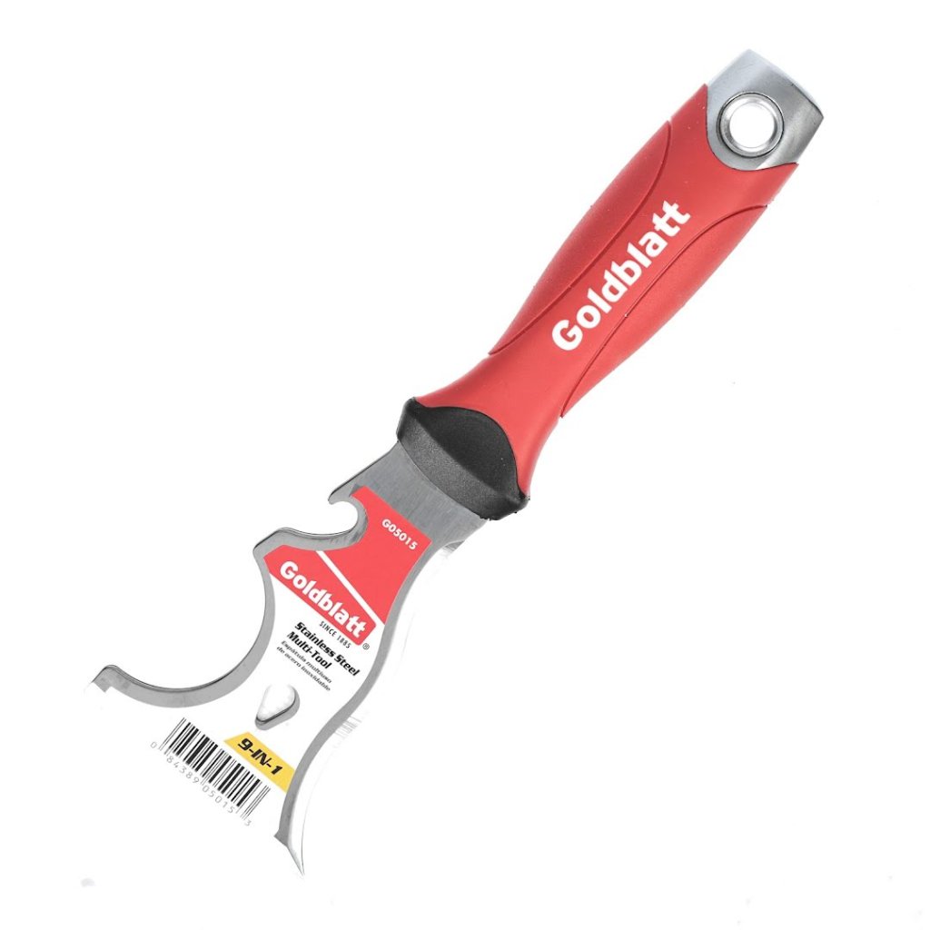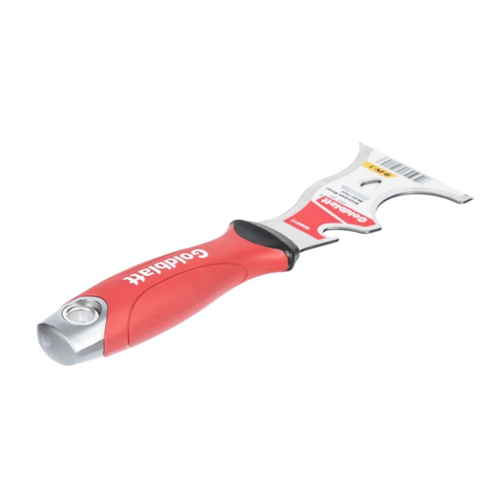 Špachtle GOLDBLATT, model G05015, je navržena pro snadnou údržbu a dlouhou životnost. Díky své nerezové čepeli může být špachtle použita na různé mokré i suché materiály. Tento model má rukojeť s měkkým úchopem, která je pohodlná do ruky a odolná úderům kladiva, což je ideální pro náročné práce.