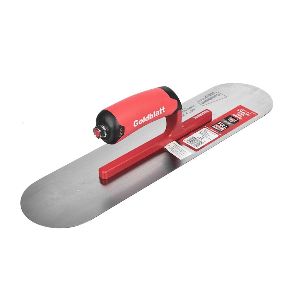 Profesionální hladicí lžíce Goldblatt RED z prvotřídní nerezové oceli je ideálním nástrojem pro každého zedníka, který potřebuje dokonale vyhladit povrch betonu a odstranit vzduchové bubliny při malých, středních i velkých betonových zálivech. Pružná, ale zároveň odolná čepel z kalené pružinové oceli zajišťuje hladký povrch bez uvolňování kameniva.