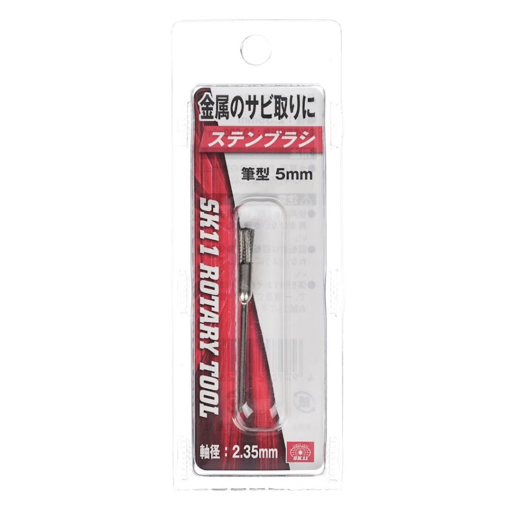Kartáč s nerezovými štětinami SK11, model SRB-101, je ideální pro odstranění lehké rzi, barvy a nečistot z kovových dílů a spojů. Disponuje nerezovým drátem, který zabraňuje přenosu rzi. Kartáč má průměr 5 mm a stopku 2,35 mm. Pracuje při maximální rychlosti otáček 30 000 ot./min.