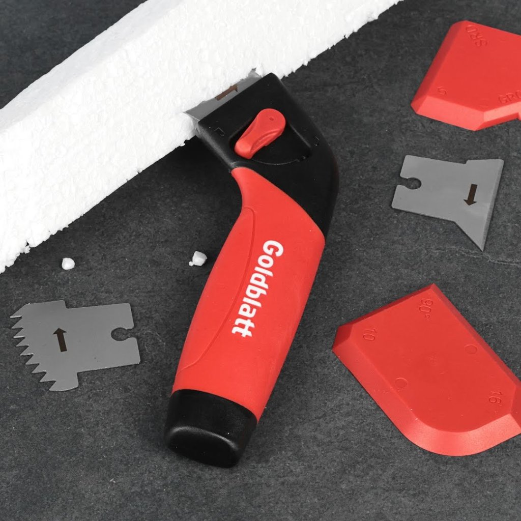 Nůž na řezání spár GOLDLBATT je ideální k odstraňování silikonových a akrylátových spár. Sada obsahuje 2 vyměnitelné čepele a 3 špachtle.