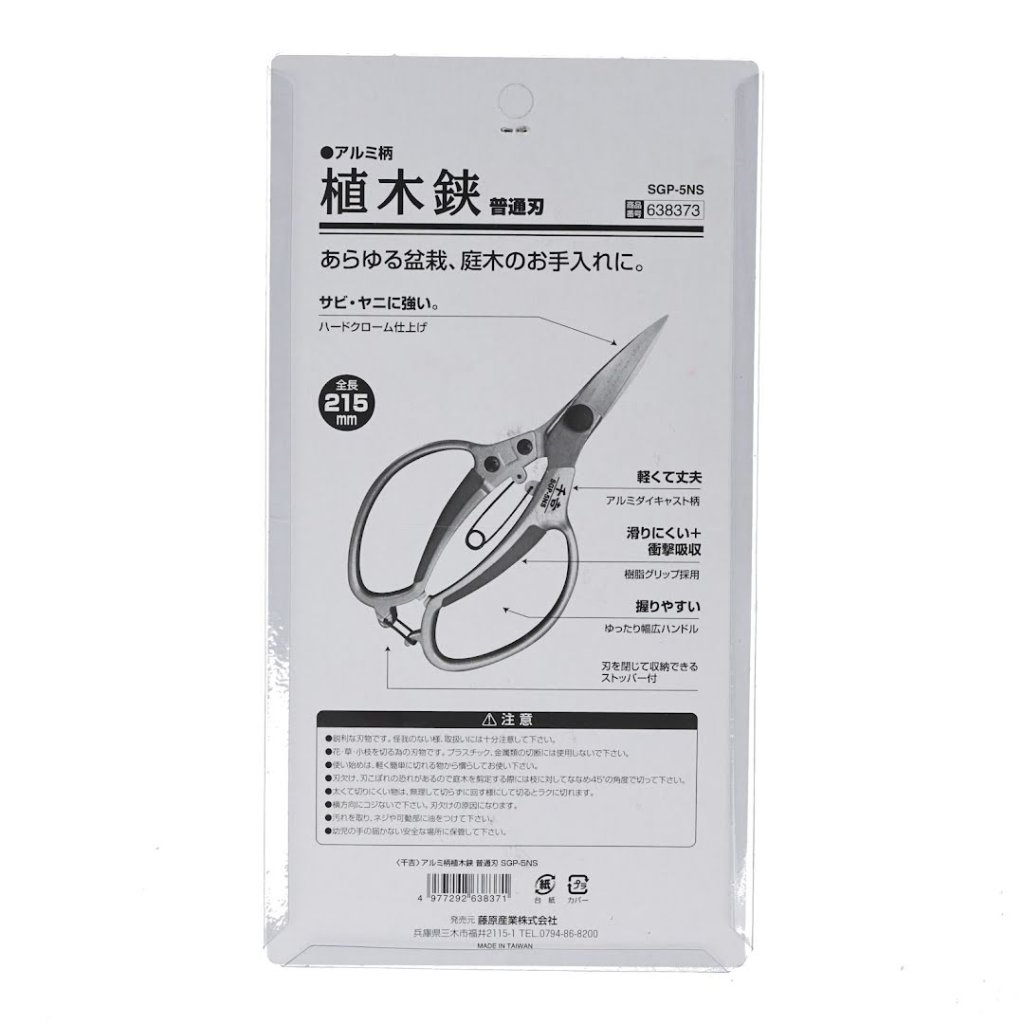 Nůžky na bonsaje SENKICHI, model SGP-5NS, jsou navrženy pro přesné stříhání a zastřihování. Jejich lehký a odolný hliníkový design zaručuje snadné použití a obsahují pružinový mechanismus, který usnadňuje řezání. Nůžky mají délku 215 mm a mohou řezat čerstvé větve o tloušťce až 8 mm.