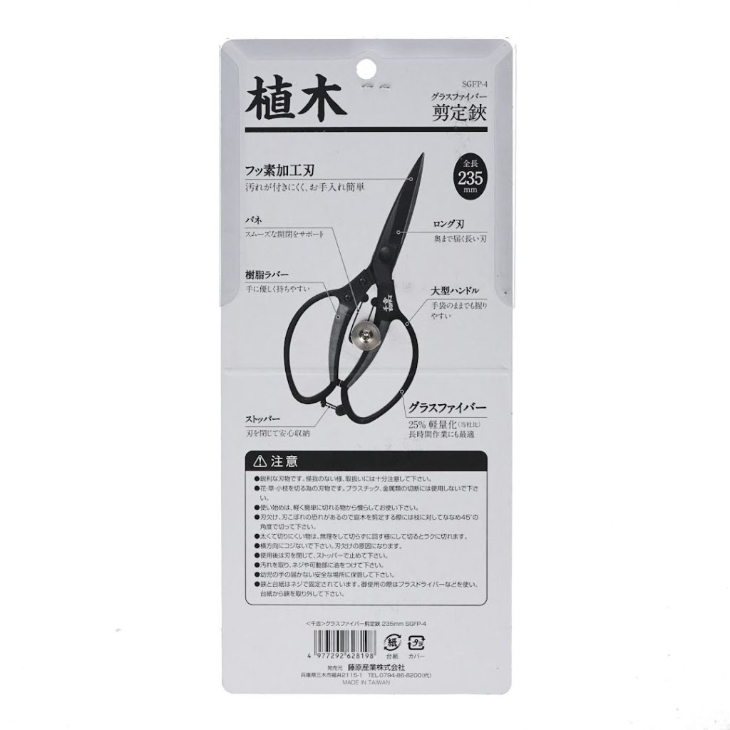 Nůžky na květiny SENKICHI, model SGFP-4, jsou navrženy pro efektivní stříhání a zastřihování. Jsou přibližně o 25 % lehčí než předchozí modely, díky rukojeti ze sklolaminátu, což snižuje fyzickou zátěž během použití. Čepel s fluorovým povrchem odolává usazování mízy a nečistot.