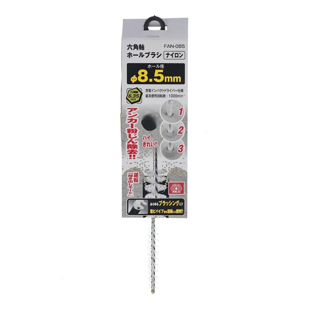 Nylonový kartáč pro vrtačky SK11, model FAN-085, je navržen pro efektivní čištění kotevních otvorů a různých trubek. Lze jej použít s aku šroubovákem pro rotační čištění. S průměrem kartáče 8,5 mm a délkou kartáče 50 mm zaručuje důkladné čištění v minimálním čase. Díky délce dříku 100 mm a šestihrannému dříku 6,35 mm je kompatibilní se standardními šroubováky. Je vhodný pro maximální rotační rychlost 1000 ot./min.