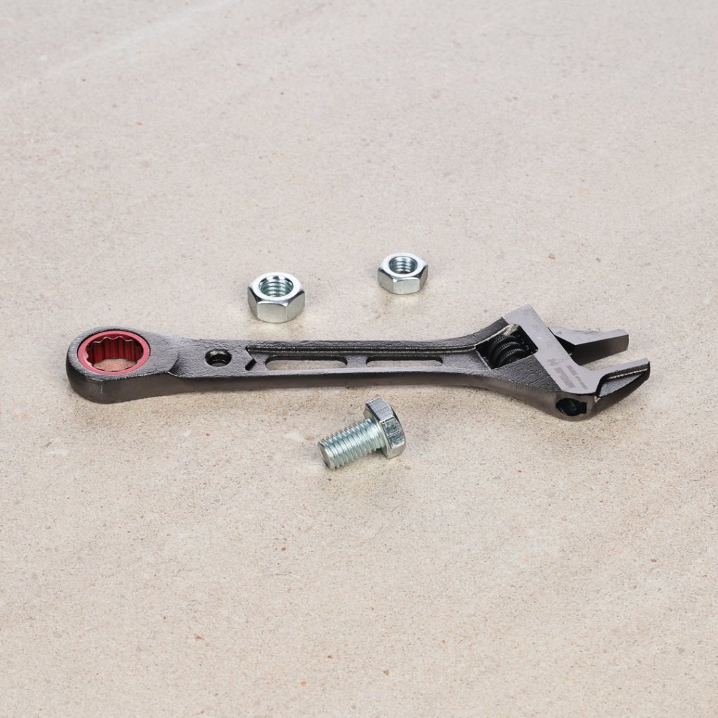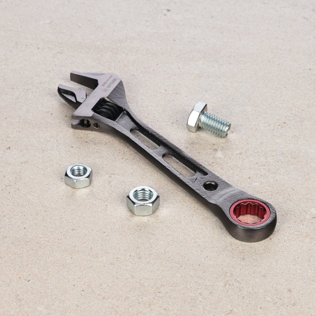 Lehký oboustranný klíč SK11. Klíč kombinuje čelisti se stupnicí 0-30 mm a ráčnu o průměru 17 mm. S tímto klíčem si hravě poradíte s utažením nebo povolením matic či objímek do velikosti 30 mm. Je vyrobený z osvědčené oceli s příměsí chromu a vanadia. Ideální klíč do dílny, servisu i průmyslového provozu.