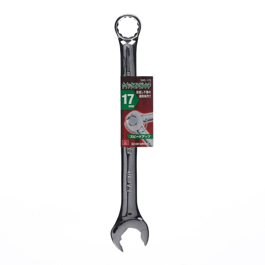 Kombinovaný očkoplochý klíč SK11, model SMS-17Q, je navržen pro efektivní ovládání šestihranných šroubů a matic. Jeho funkce nepřetržitého provozu umožňuje rychlou práci bez nutnosti opakovaného vkládání a vyjímání, podobně jako u ráčny. Měří 36 x 226 x 10 mm a váží 180 g, což z něj činí praktický nástroj pro vaši sadu nářadí. Klíč je speciálně vyroben pro 17 mm šrouby a matice.