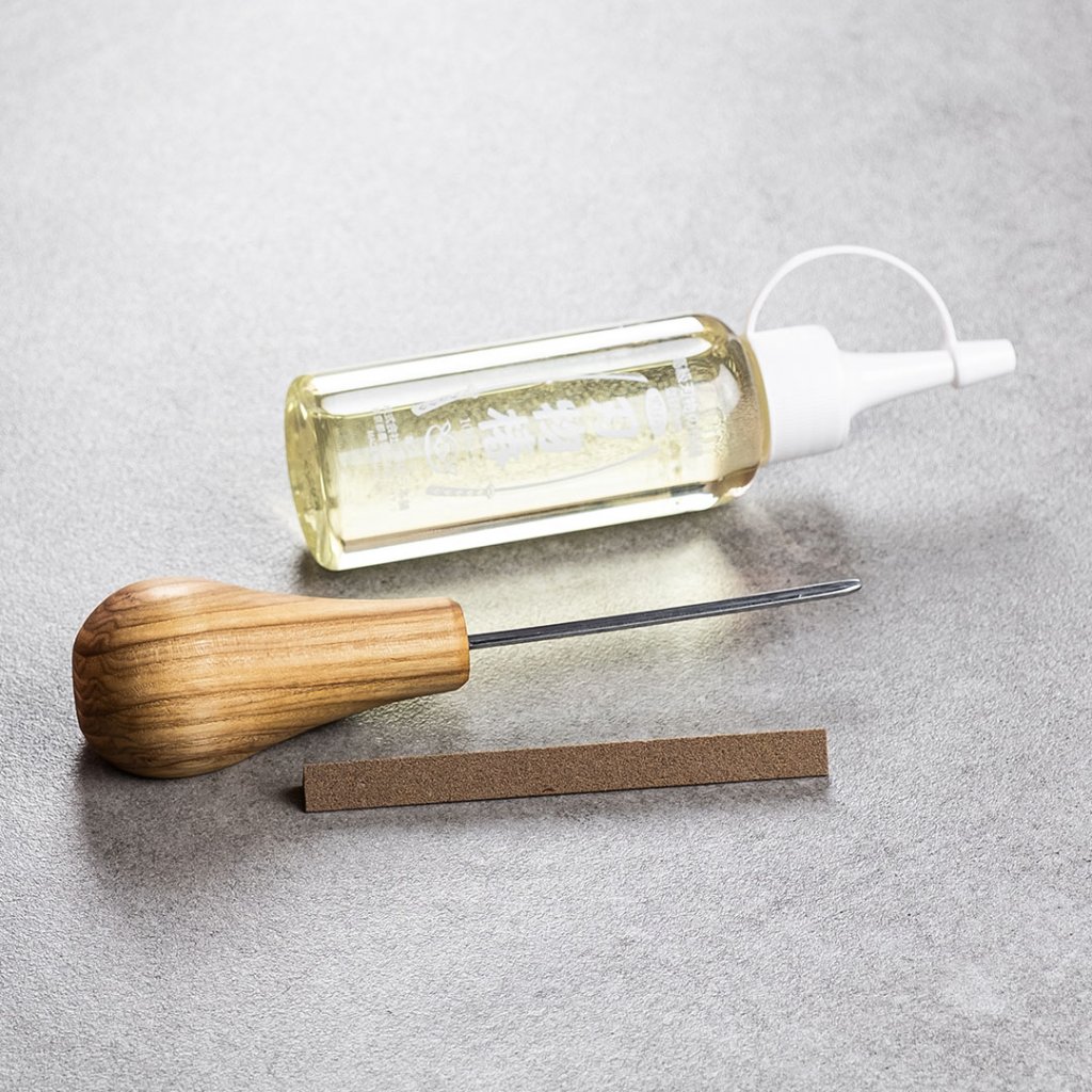 Abyste udrželi olejové kameny v dobré kondici, je potřeba je čas od času vyčistit. Pro tento účel je nejlepší použít minerální olej nebo terpentýn. Srovnávání podbroušených olejových kamenů se provádí stejným způsobem jako u vodních kamenů – pomocí srovnávacího kamene nebo pomocí vodního brusného papíru. Ke srovnání byste však měli použít jeden z výše uvedených olejů.