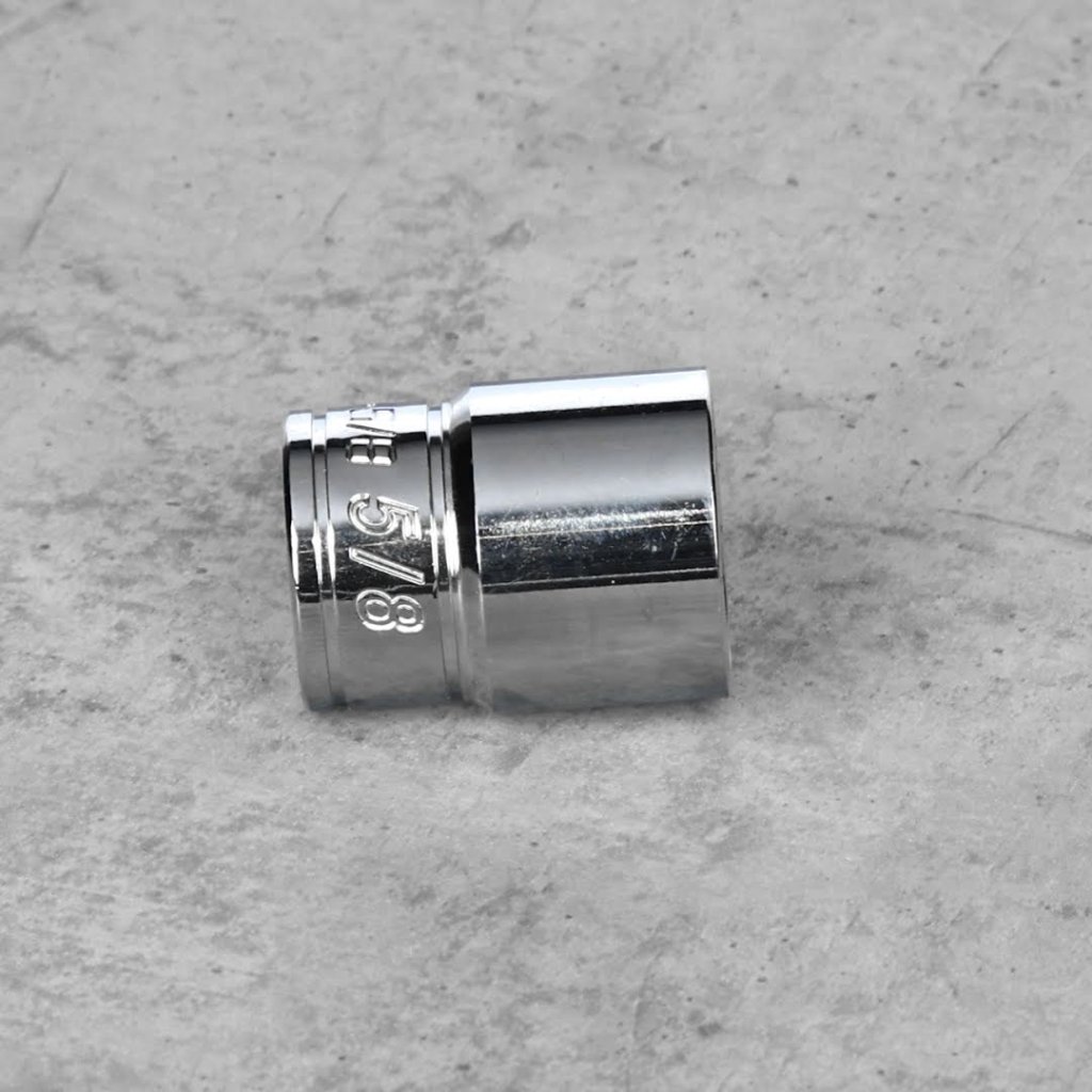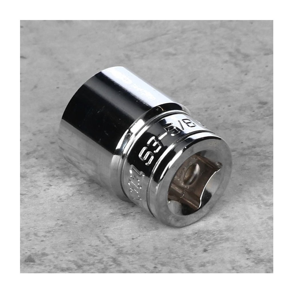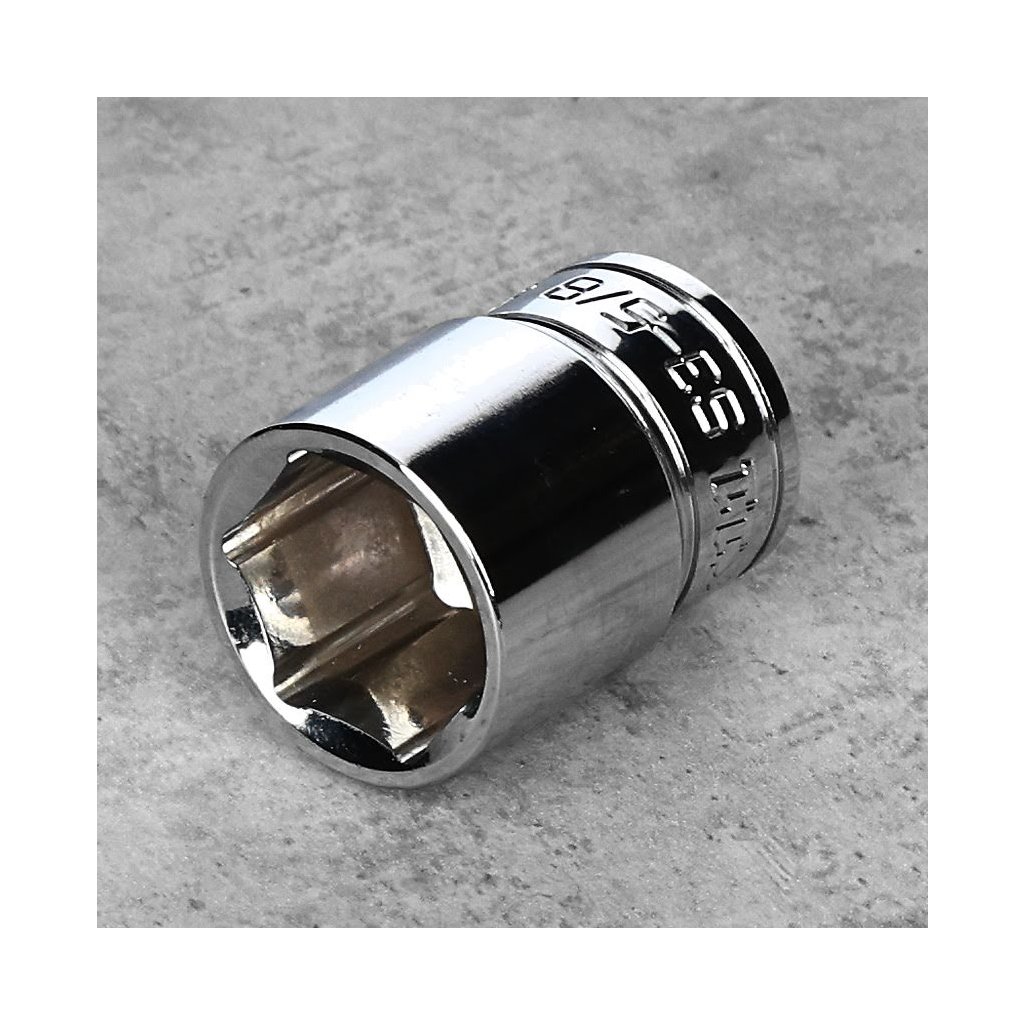 Šestihranná hlavice (ořech) od značky SK11, model S3-5/8, je kvalitní hlavice, která splňuje normy DIN a ANSI. Má 9,5 mm (3/8 palce) upínání a 5/8 palcovou šířku hlavice, což jí činí ideální pro utahování a povolování šestihranných šroubů a matic. Chromovaný design pro odolnost.