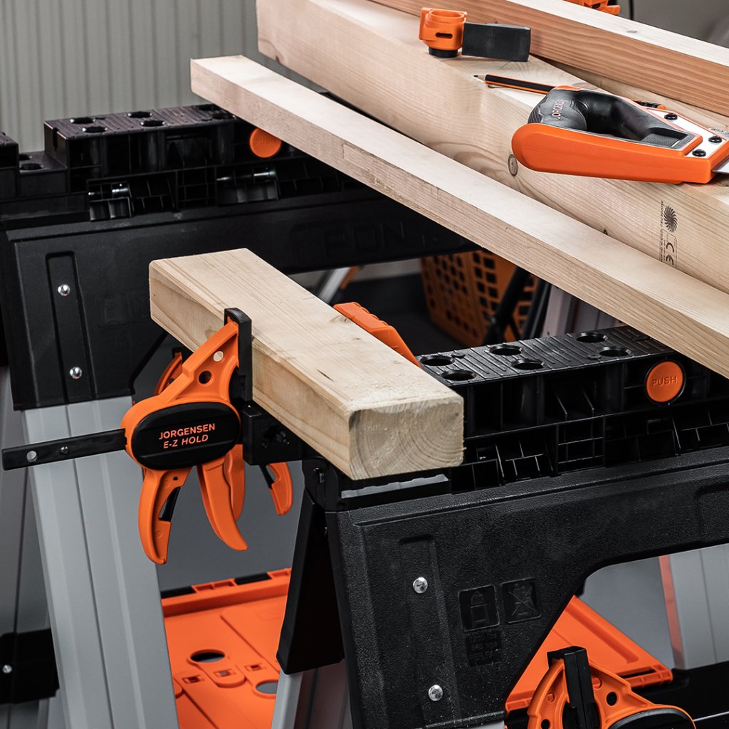 Upínací pracovní stůl PONY JORGENSEN 2-v-1 s rychlupínacími svorkami a přídržnými zarážkami. Nosnost až 227 kg jako stůl a až 454 kg jako stavební koza. Praktická a snadná...