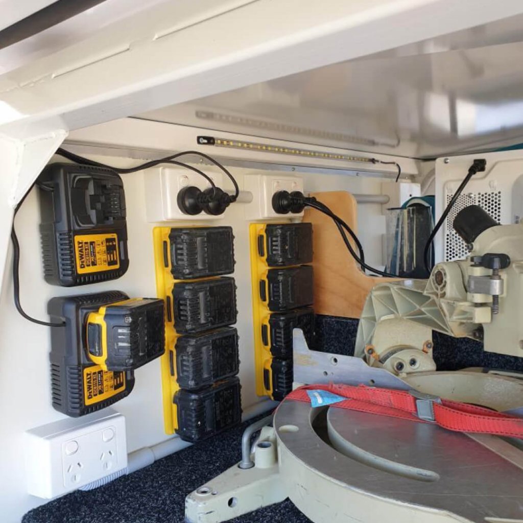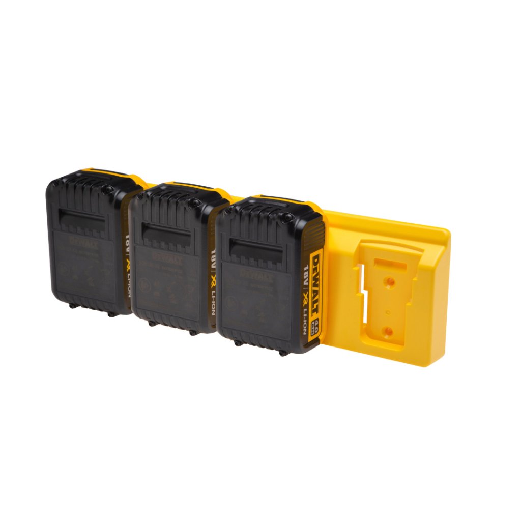Držák baterií 48 TOOLS™ pro baterie DeWalt je navržen tak, aby pojal 4 standardní 18V a 20V baterie.