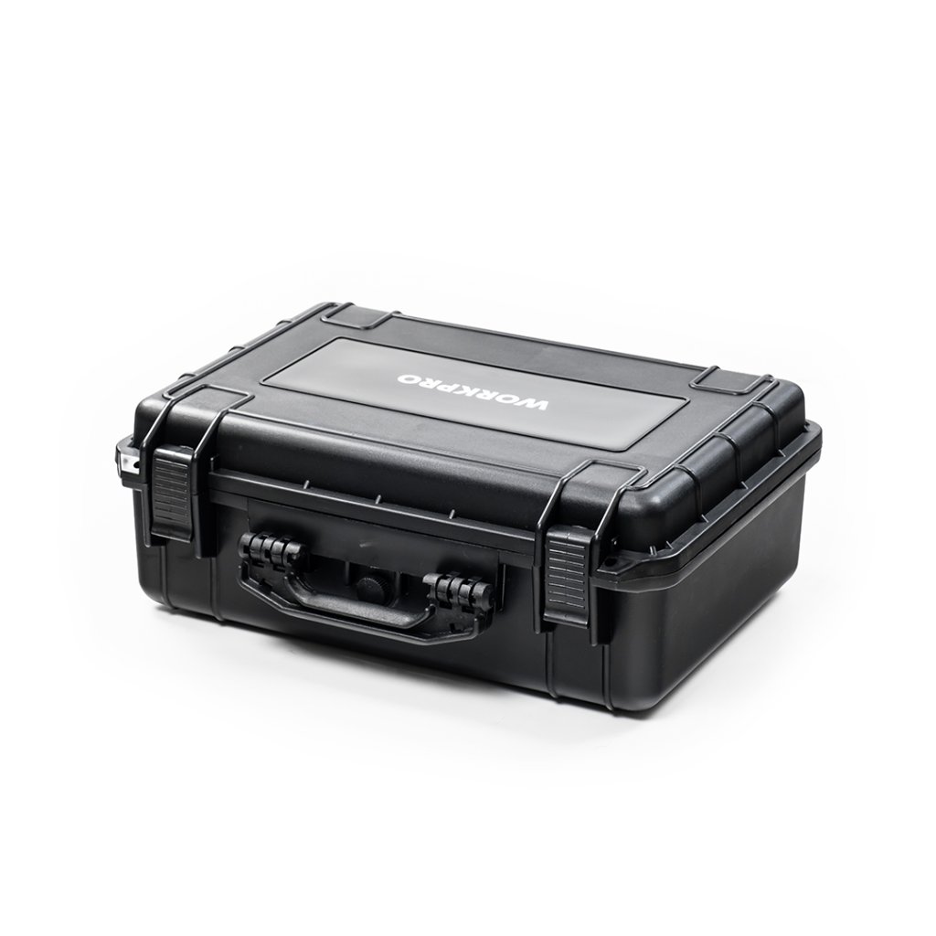 Uzavíratelný box - kufr WORKPRO s plastovým madlem a odolností proti vodě a nárazům. Voděodolnost podle normy IPX5. Plastová skořepina vyvinutá proti poškození nárazem. Tvarovatelná paměťová pěna uvnitř boxu.