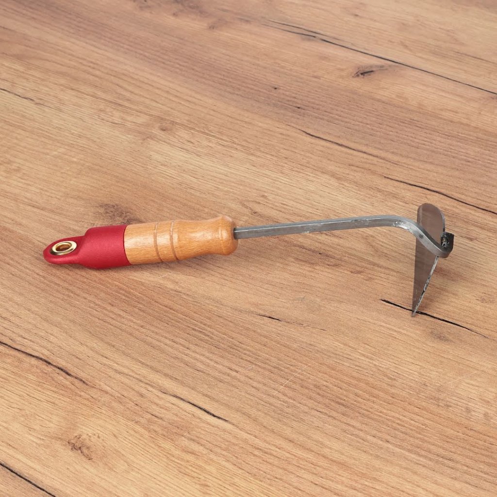 Plecí motyčka SENKICHI, model SRC-1, je všestranný nástroj pro efektivní odstraňování plevele. Díky svému kroucenému krku a kovové konstrukci umožňuje snadný přístup k rovným plochám a rohům. 125 mm čepel zajišťuje přesnost, zatímco lehký design o hmotnosti 160 g zajišťuje pohodlnou manipulaci. Je ideální pro zahradníky hledající spolehlivý nástroj pro udržení upraveného vzhledu své zahrady.