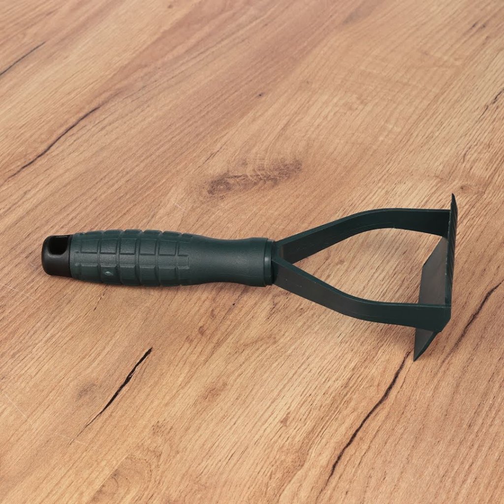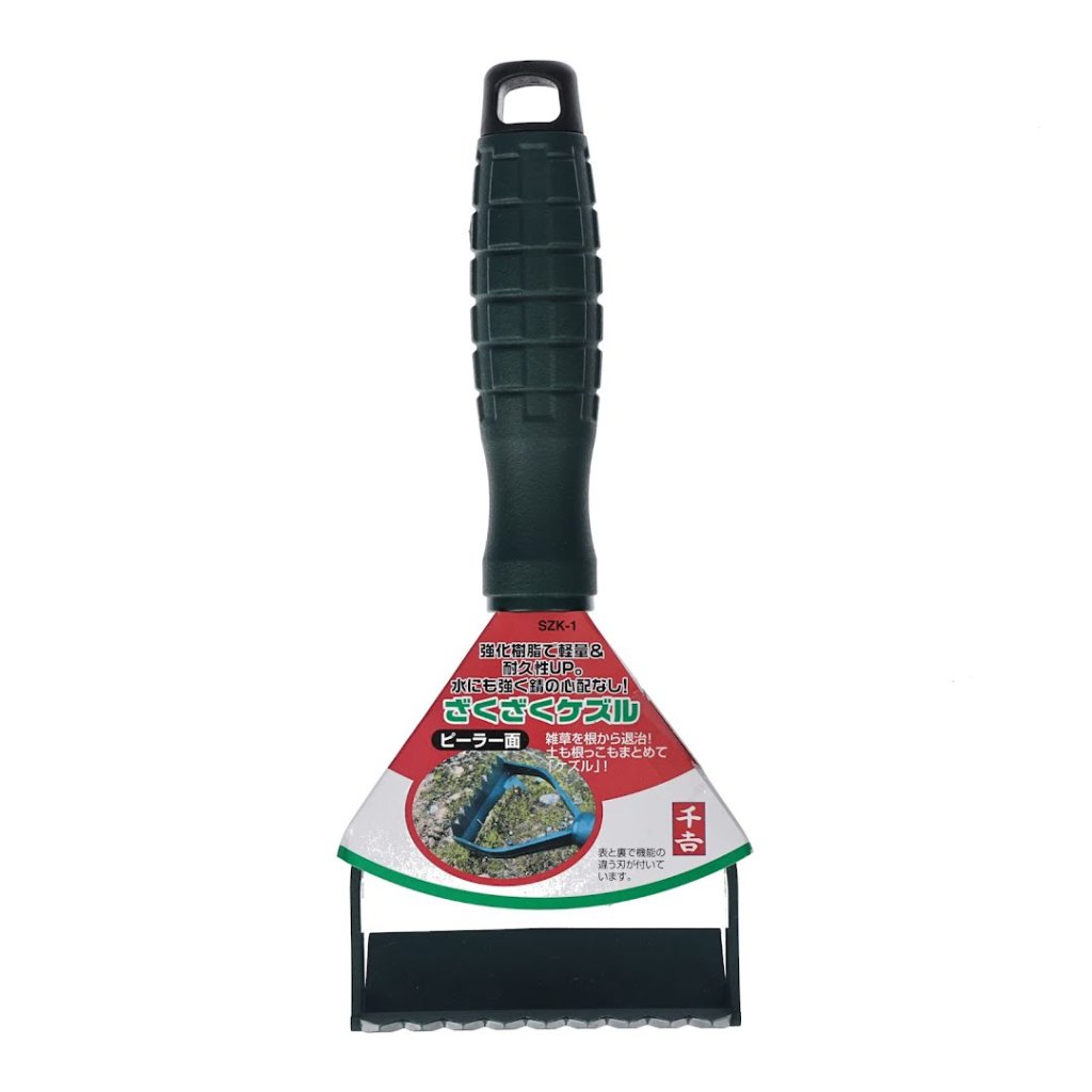Zahradní plečka SENKICHI, model SZK-1, je univerzální nástroj pro efektivní odstranění plevele. Disponuje dvěma odlišnými čepelemi: zubatým ostřím pro zvládnutí tvrdé, zakořeněné půdy a škrabací stranou pro efektivní zpracování měkčí půdy. Plečka je vyrobena ze zesílené pryskyřice. Ideální pro udržení dokonale upravené zahrady.