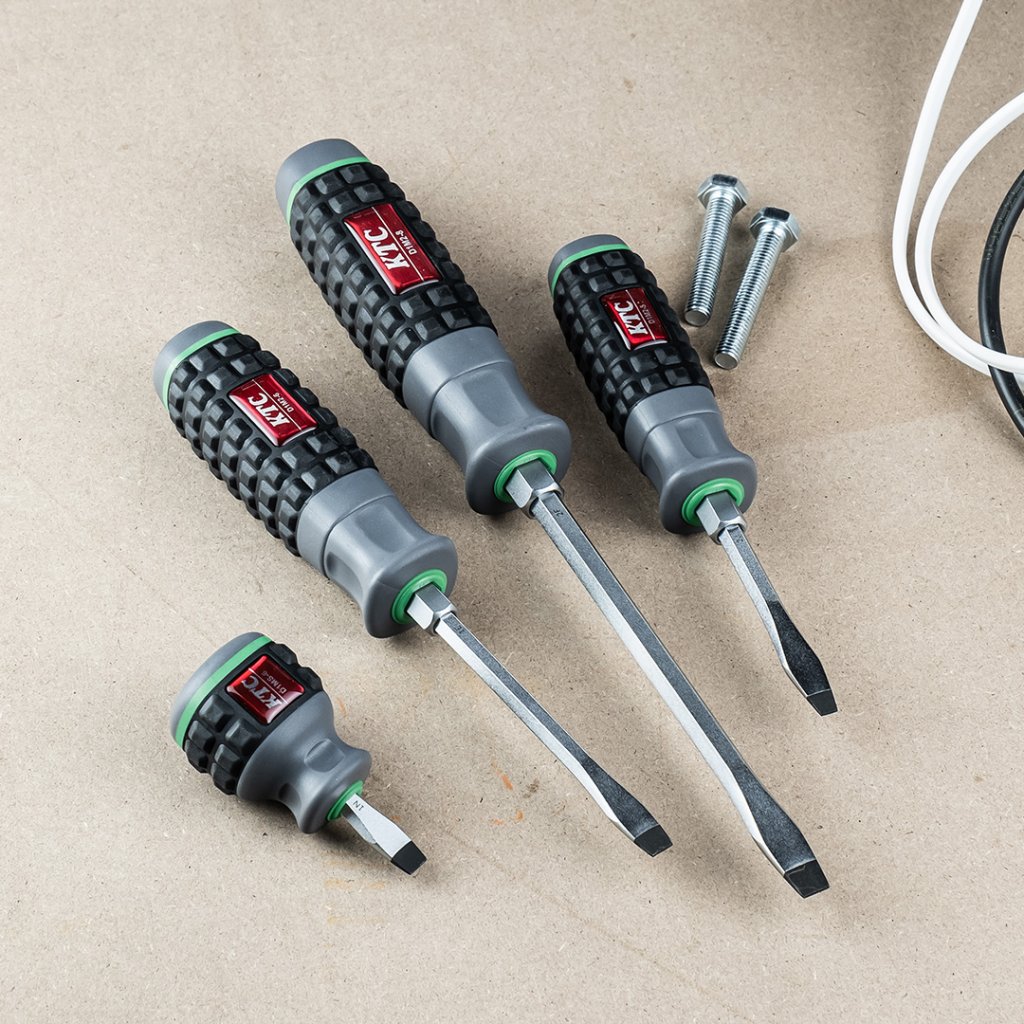 Šroubováky japonské značky KTC vám pomohou s montáží doma, v dílně, na stavbě, či v průmyslovém provozu. Jsou vyrobeny z odolné kalené oceli s antikorozním chromováním a disponují pohodlnou ergonomickou rukojetí z termoplastické gumy. Hexa tvar těla.