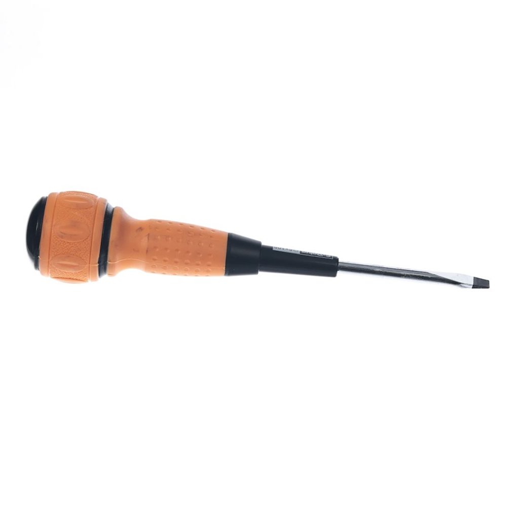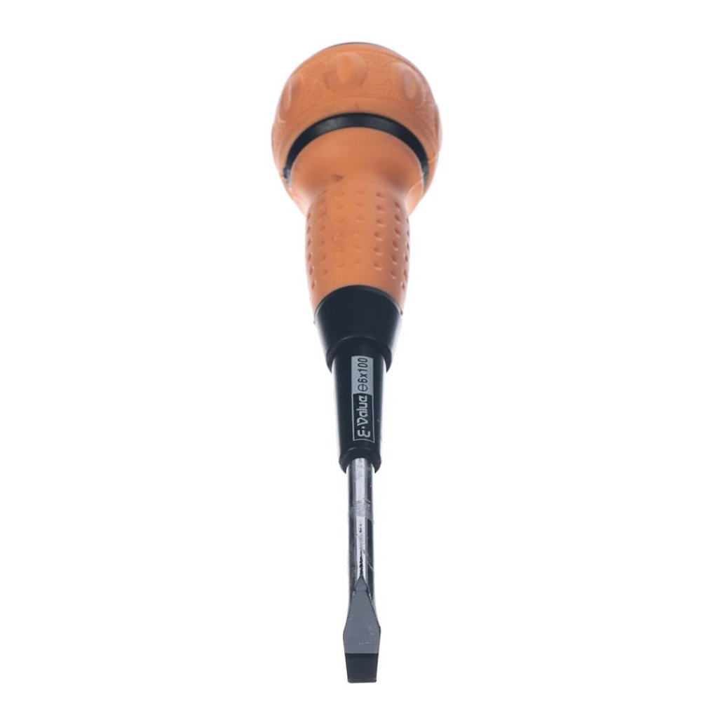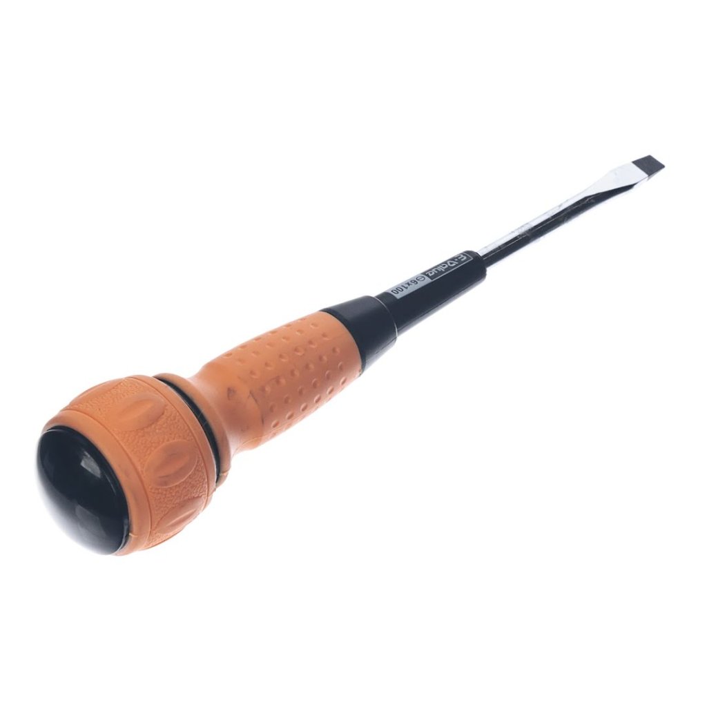 Šroubovák E-VALUE s kulovou rukojetí má elastický polstrovaný úchop, který poskytuje pohodlné, neklouzavé držení, což usnadňuje aplikaci točivého momentu. Kulatý design zajišťuje efektivní přenos síly tím, že podepírá dlaň. Kromě toho magnetický hrot pomáhá zabránit vypadávání šroubů během používání. Tento nástroj je ideální pro utahování šroubů 6 mm x 100 mm a váží 100g.