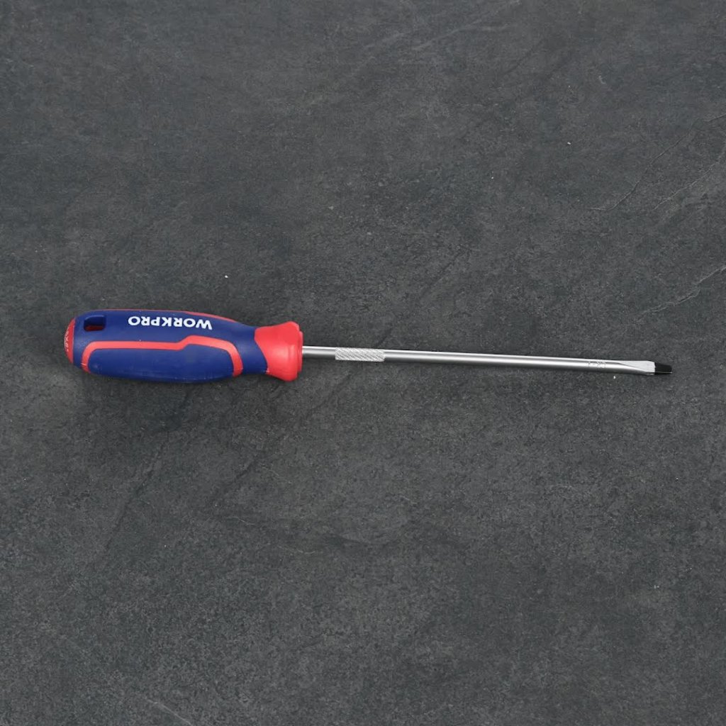 Plochý šroubovák od značky WORKPRO je nástroj, který pomáhá při uvolňování nebo utahování plochých šroubů o velikosti 10 mm. Díky pevnému úchopu budete moci pracovat s precizností a komfortem. Šroubovák disponuje délkou 152 mm, což vám zaručí dobrý dosah.