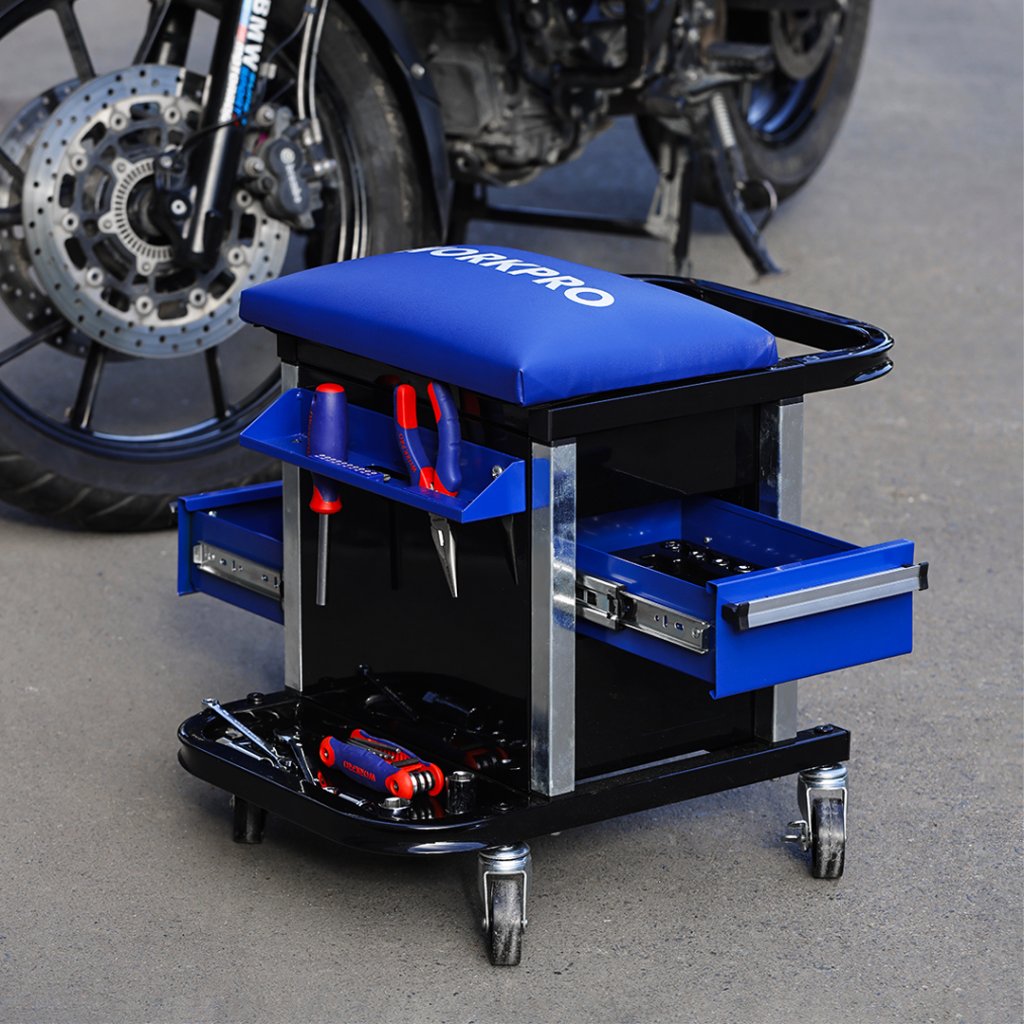 Pojízdná stolička WORKPRO s boxem na nářadí s vinylovým sedátkem