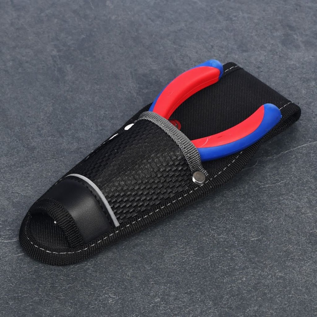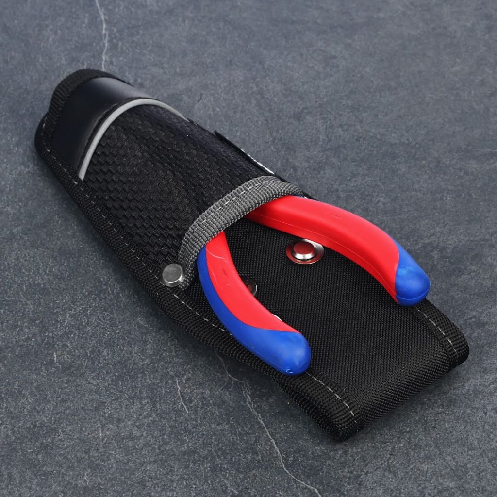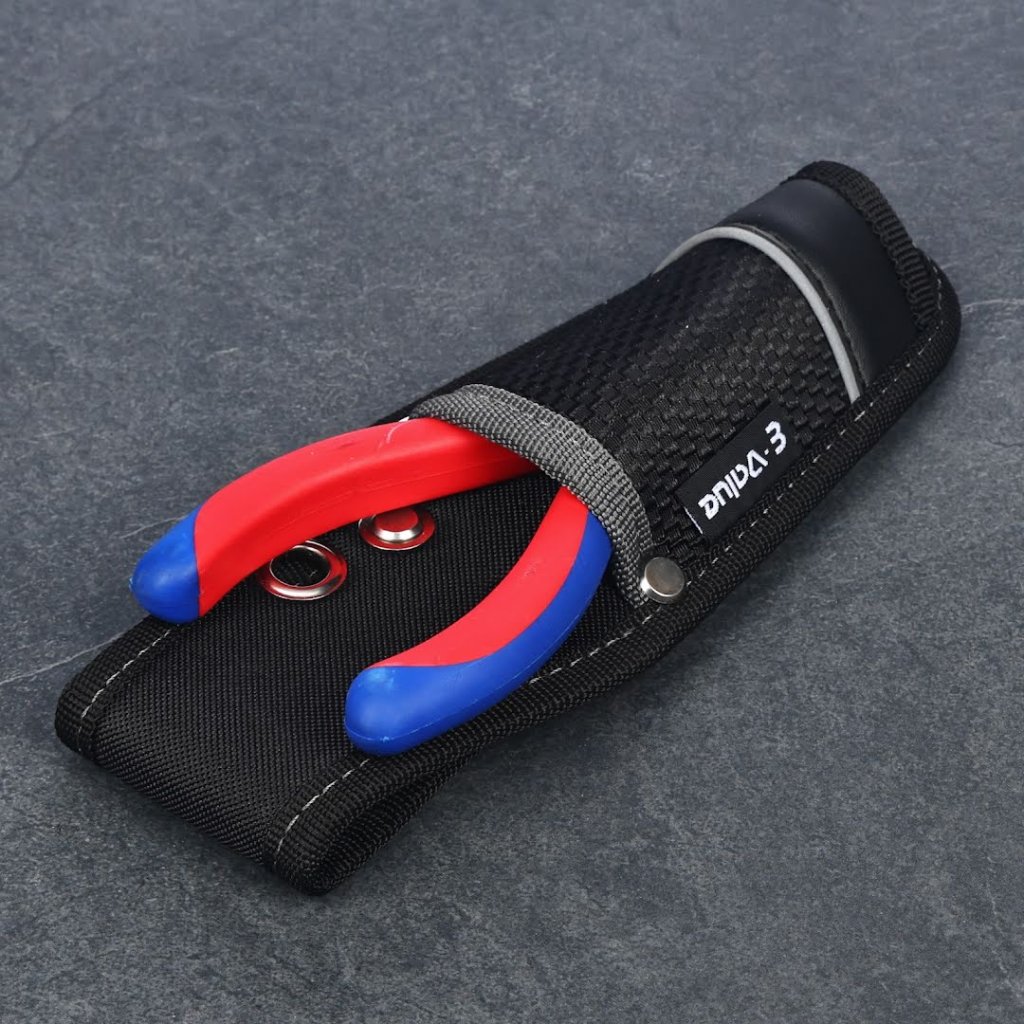 Tento E-VALUE držák na nářadí, model ETK-1T GR, je propracovaný, vysoce kvalitní doplněk pro nářadí navržený pro vynikající poměr cena/výkon. Tento lehký a odolný držák je ideální pro přenášení kleští a dalšího nářadí. Měří přibližně 80 mm na šířku, 210 mm na výšku a 30 mm do hloubky a podporuje opasky až do šířky 60 mm. Šedá a černá barevná kombinace nabízí elegantní a profesionální vzhled.
