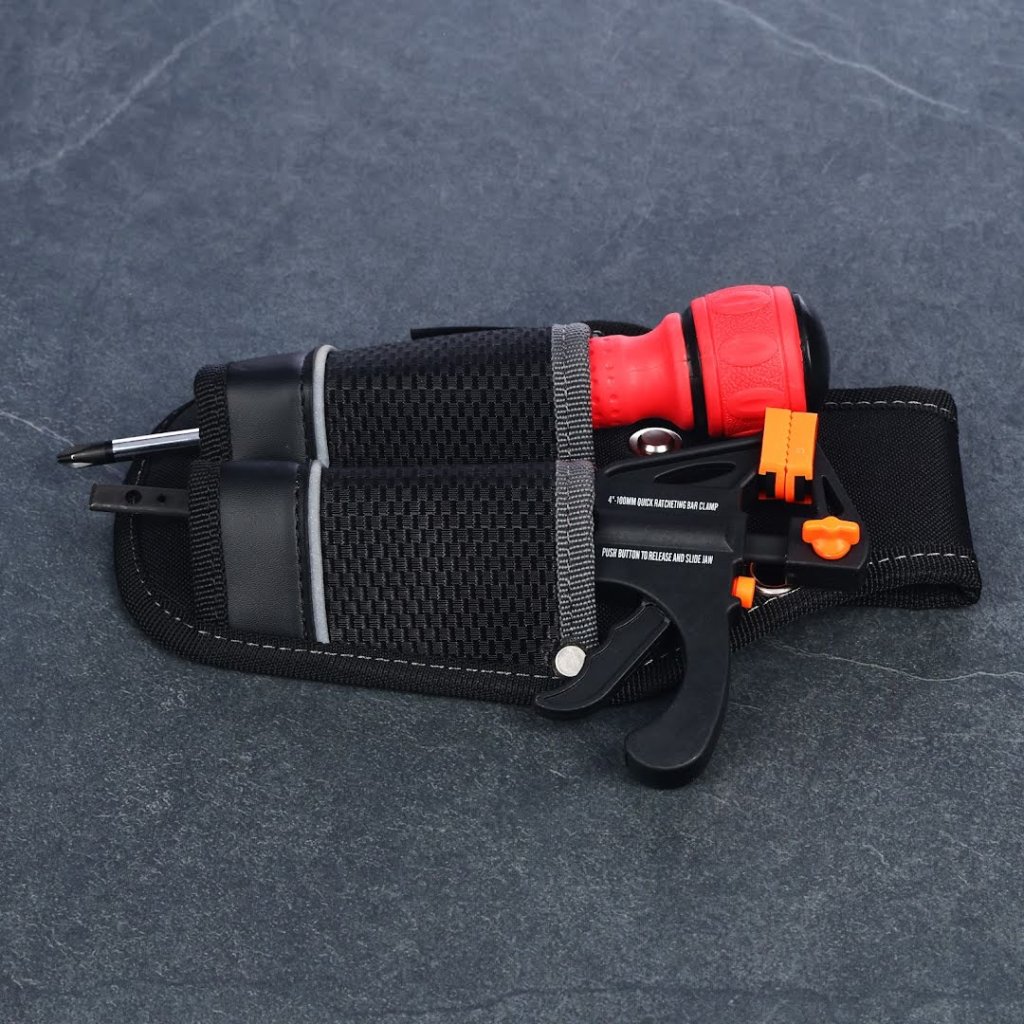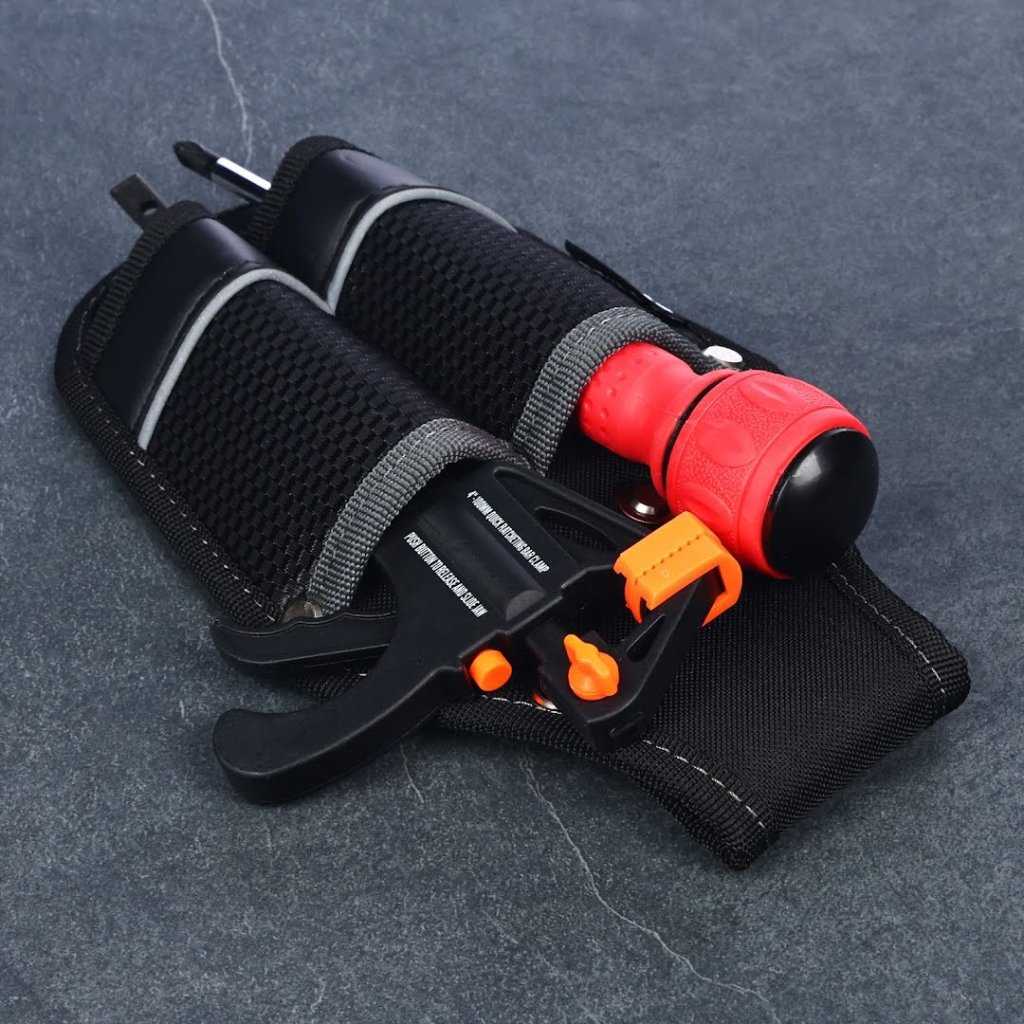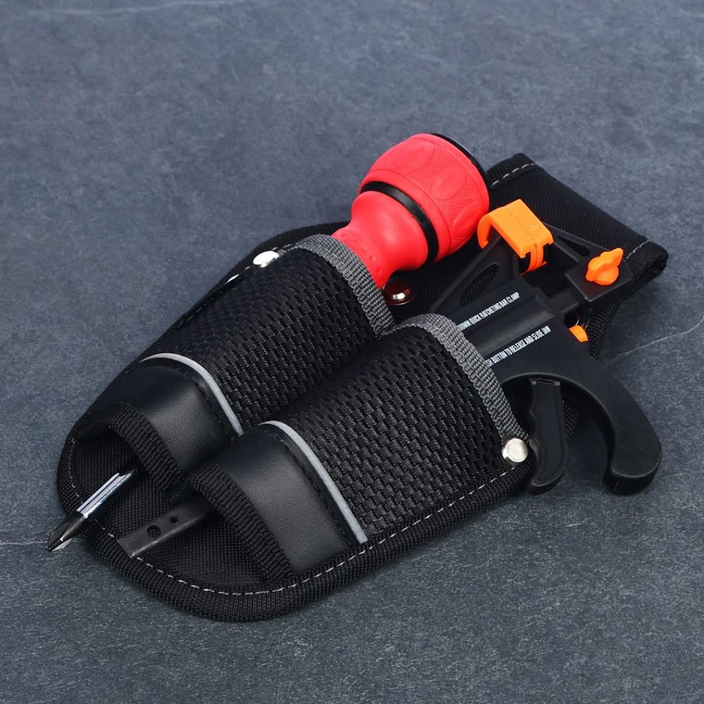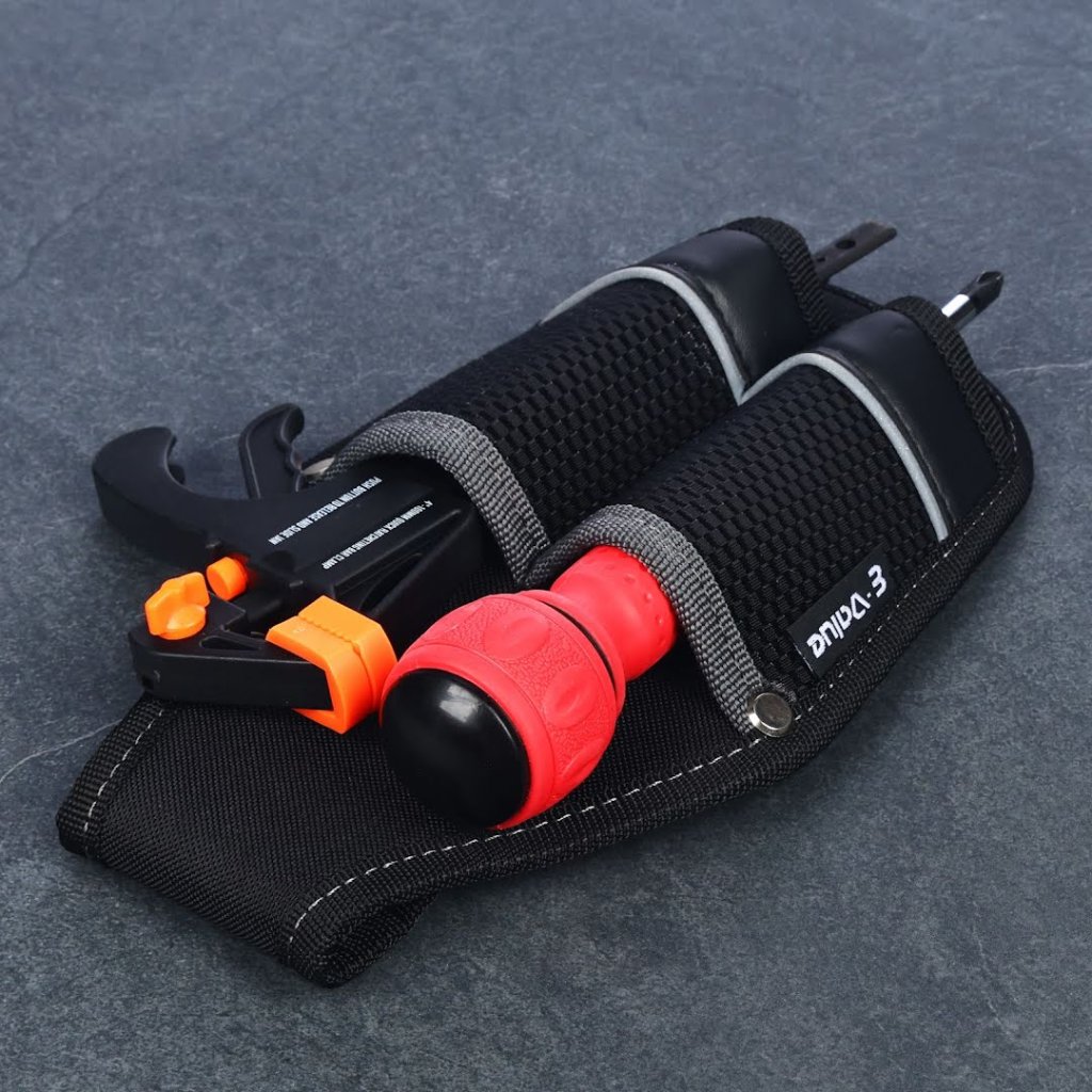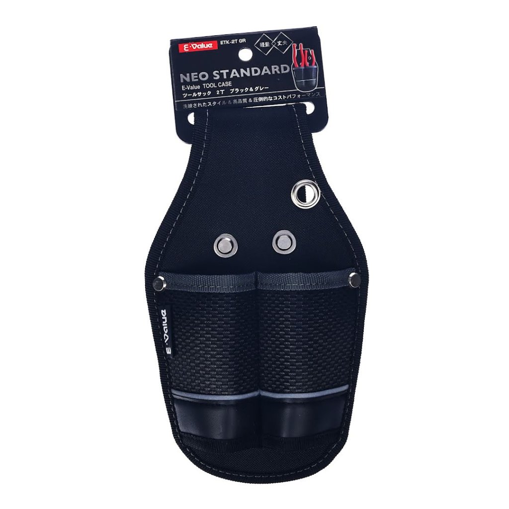 Pouzdro na nářadí E-VALUE, model ETK-2T GR, je navrženo pro pohodlné přenášení nářadí jako jsou kleště, kladiva, šroubováky a další. Tento lehký a odolný držák nářadí má přibližné rozměry 130 mm na šířku, 240 mm na výšku a 30 mm na hloubku a podporuje pásky až do šířky 60 mm. Jeho elegantní šedý a černý design nabízí stylové a funkční řešení pro vaše potřeby při přenášení nářadí.