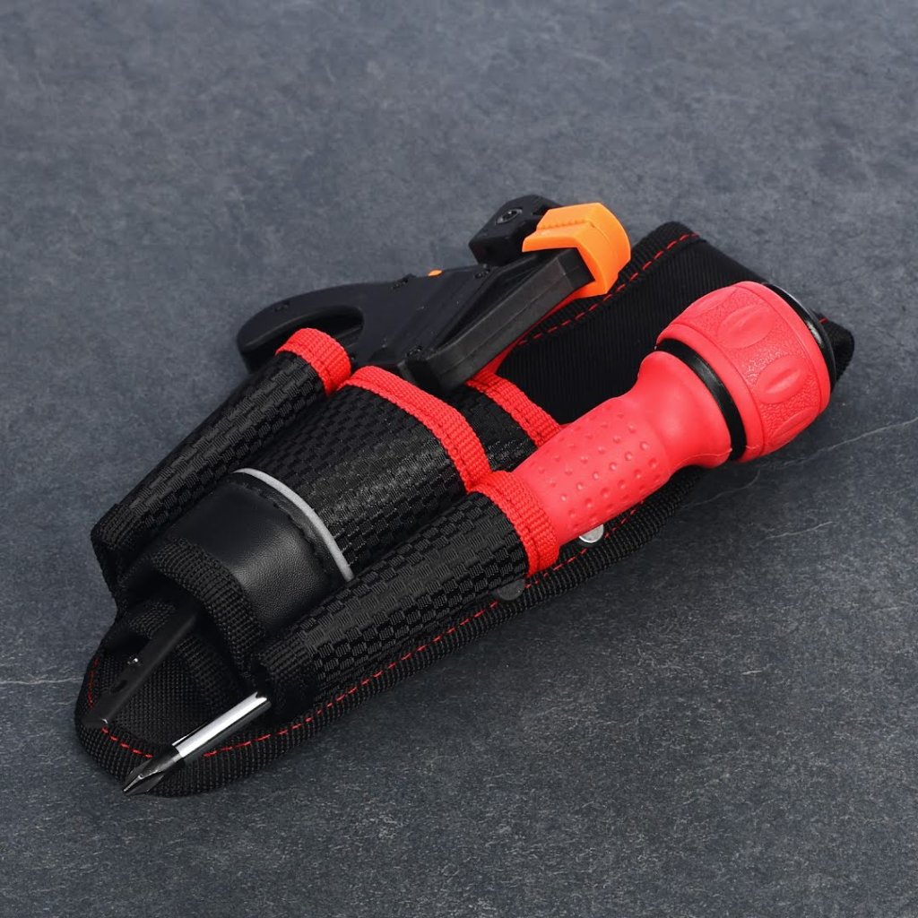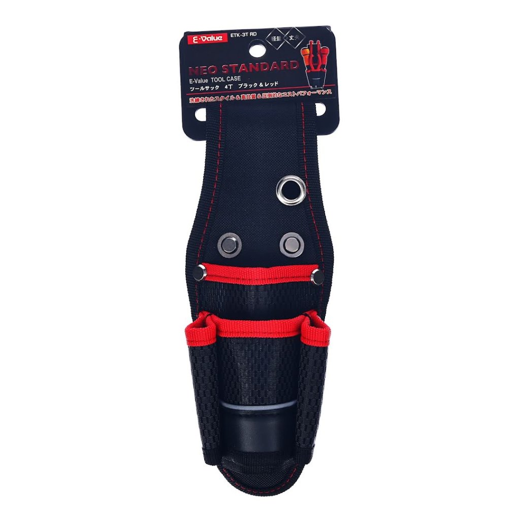 E-VALUE nástrojové pouzdro se 4 kapsami, model ETK-3T RD, je navrženo pro styl a funkčnost. Tento lehký a odolný držák na nástroje je ideální pro přenášení kleští, šroubováků a dalších nezbytných nástrojů. Se čtyřmi praktickými kapsami měří přibližně 85 mm na šířku, 230 mm na výšku a 50 mm do hloubky. Držák má elegantní černo-červený design a je kompatibilní s opasky až do šířky 60 mm. Je ideální pro každého nadšence do kutilství nebo profesionálního řemeslníka.