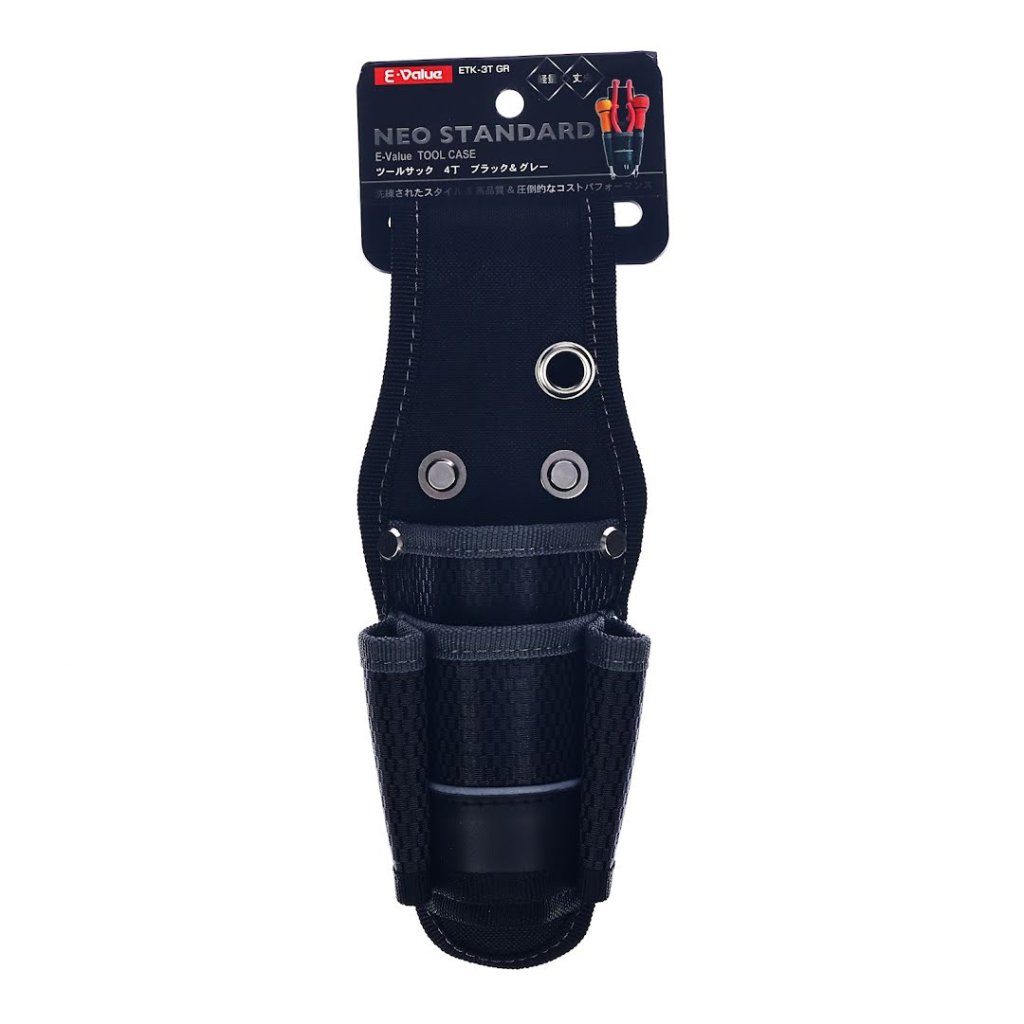 E-VALUE pouzdro na nářadí, model ETK-3T GR, je navrženo pro efektivní organizaci nástrojů a snadné přenášení. Tento lehký a odolný držák je ideální pro přenášení kleští, šroubováků a dalších důležitých nástrojů. S rozměry 85 mm na šířku, 230 mm výšku a 50 mm hloubku se pohodlně vejde na opasky až do šířky 60 mm. Šedá a černá barevná kombinace dodává vaší sadě nářadí elegantní a profesionální vzhled.