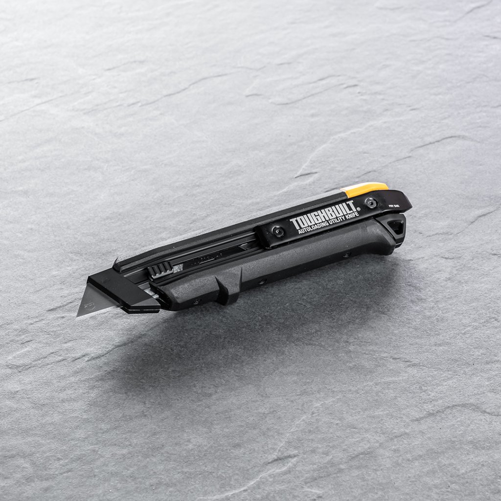 Odolný pracovní nůž TOUGHBUILT® Autoloading Utility Knife s rovnou konstrukcí rukojeti. Výhodou šikmé konstrukce je také lepší přehled při řezání materiálu - na řez jednoduše vidíte. Čepel má 2 pozice vysunutí a bezpečnostní zámek. Rychlá výměna čepele pomocí tlačítka. Protiskluzová rukojeť vám dodá jistotu při práci s takto ostrým nástrojem. Zásobník pojme až 5 čepelí - 5 čepelí je součástí balení. Robustní americký vzhled - vyroben tak, aby vydržel.
