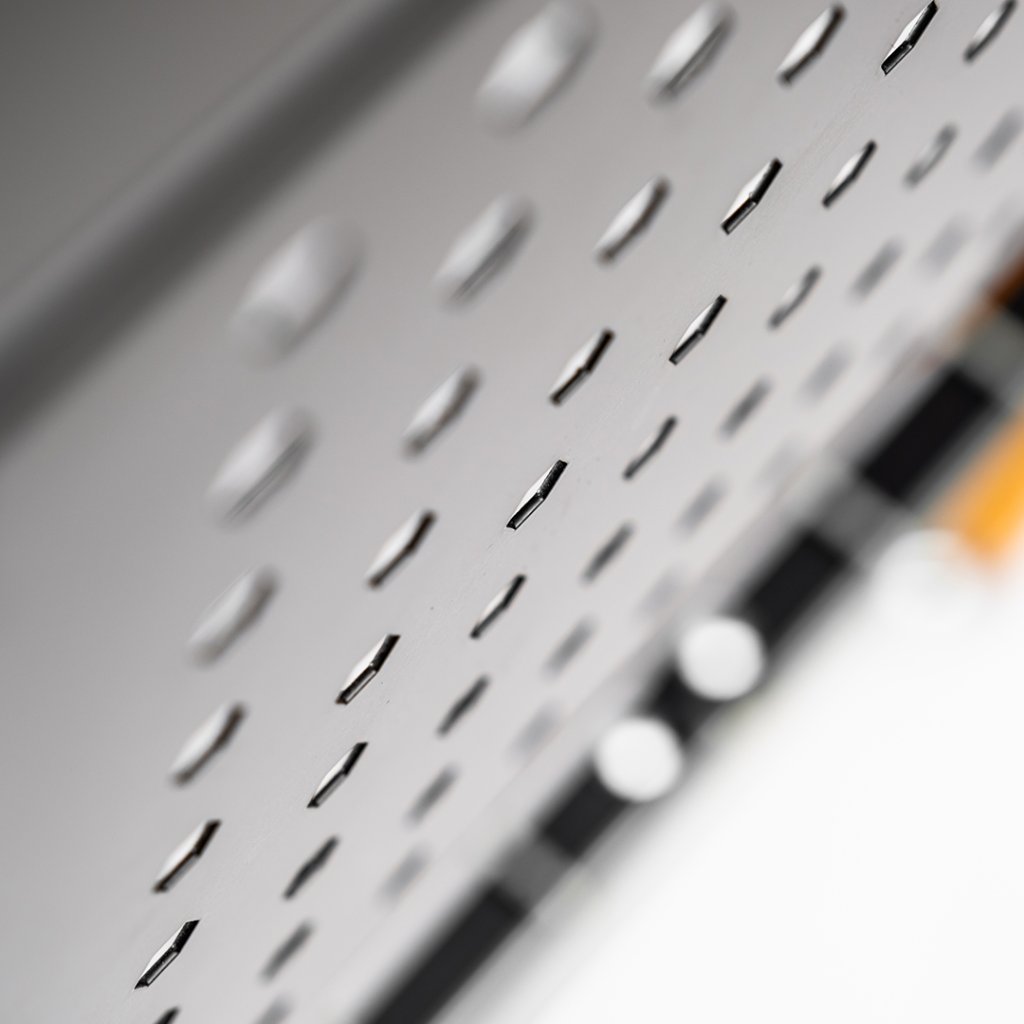 Možnost vyměnit pracovní desku, ať už použitou za novou, tak i za speciální děrovanou, dle vaší potřeby. Obě desky z MDF a jsou opatřeny odolným černým laminem a natištěnou stupnicí v metrické soustavě.