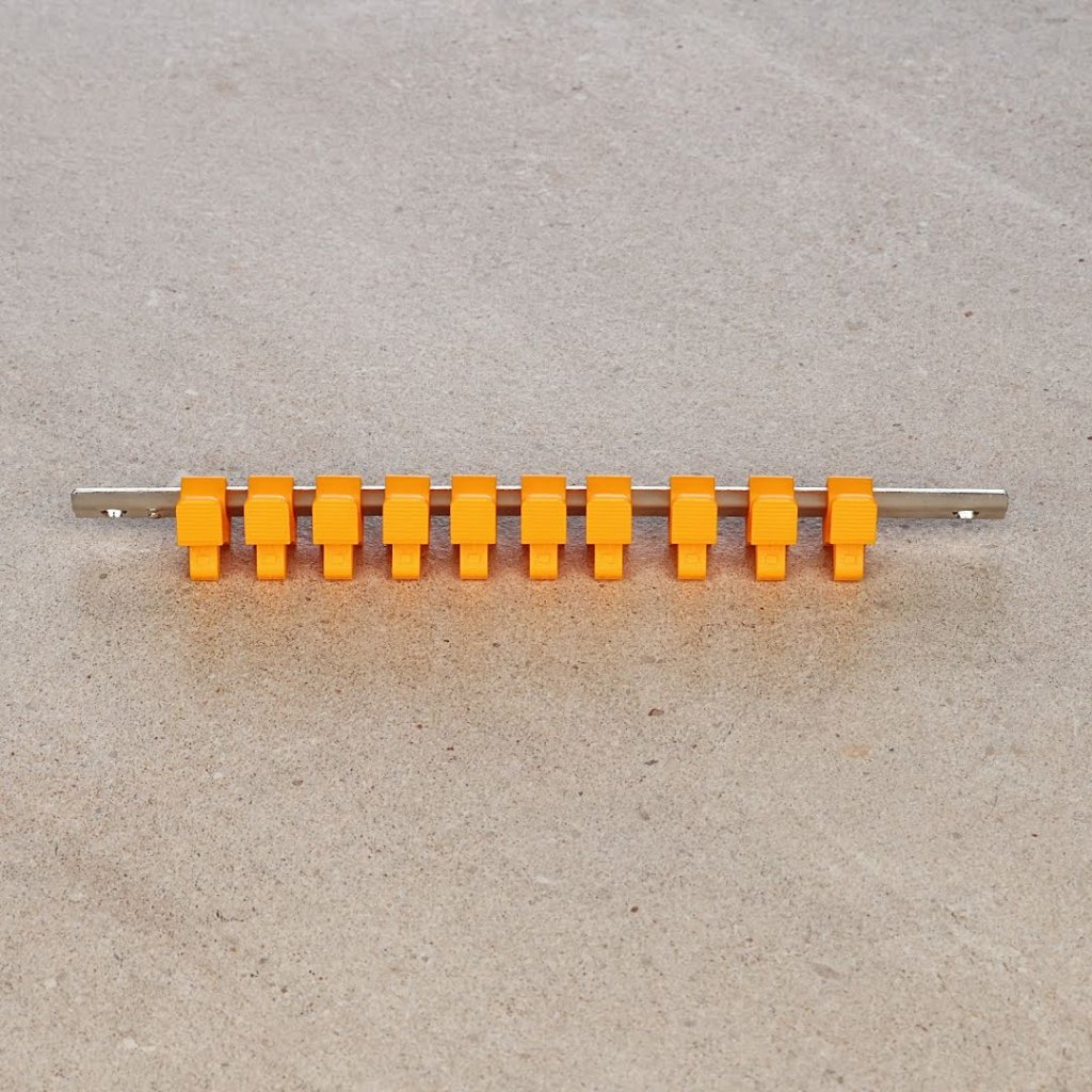 Držák SK11, model SSH210N, je ideální pro správu a ukládání nástrčných klíčů. Nabízí jednodotykový mechanismus pro snadné vyjmutí klíče a zajišťuje, že klíče jsou bezpečně připevněny. Obsahuje deset žlutých klipů a celková délka je 210 mm. Tento držák je perfektní pro udržení nástrčných klíčů organizované a snadno přístupné.