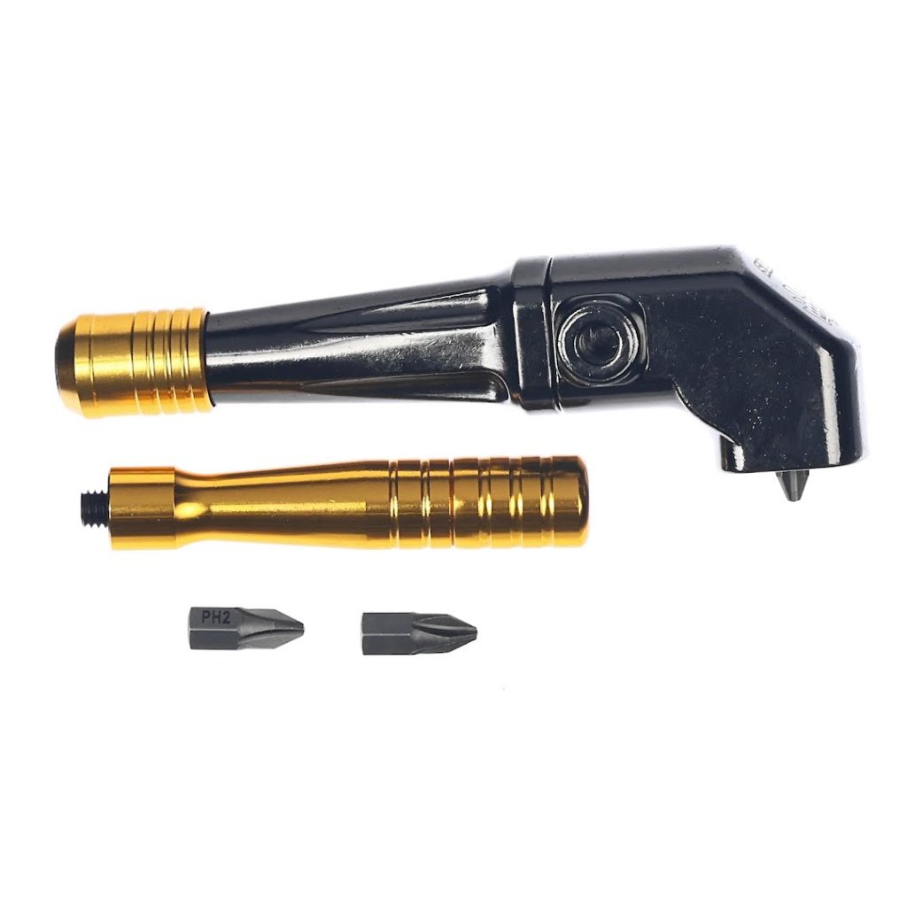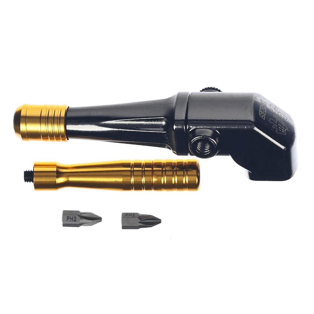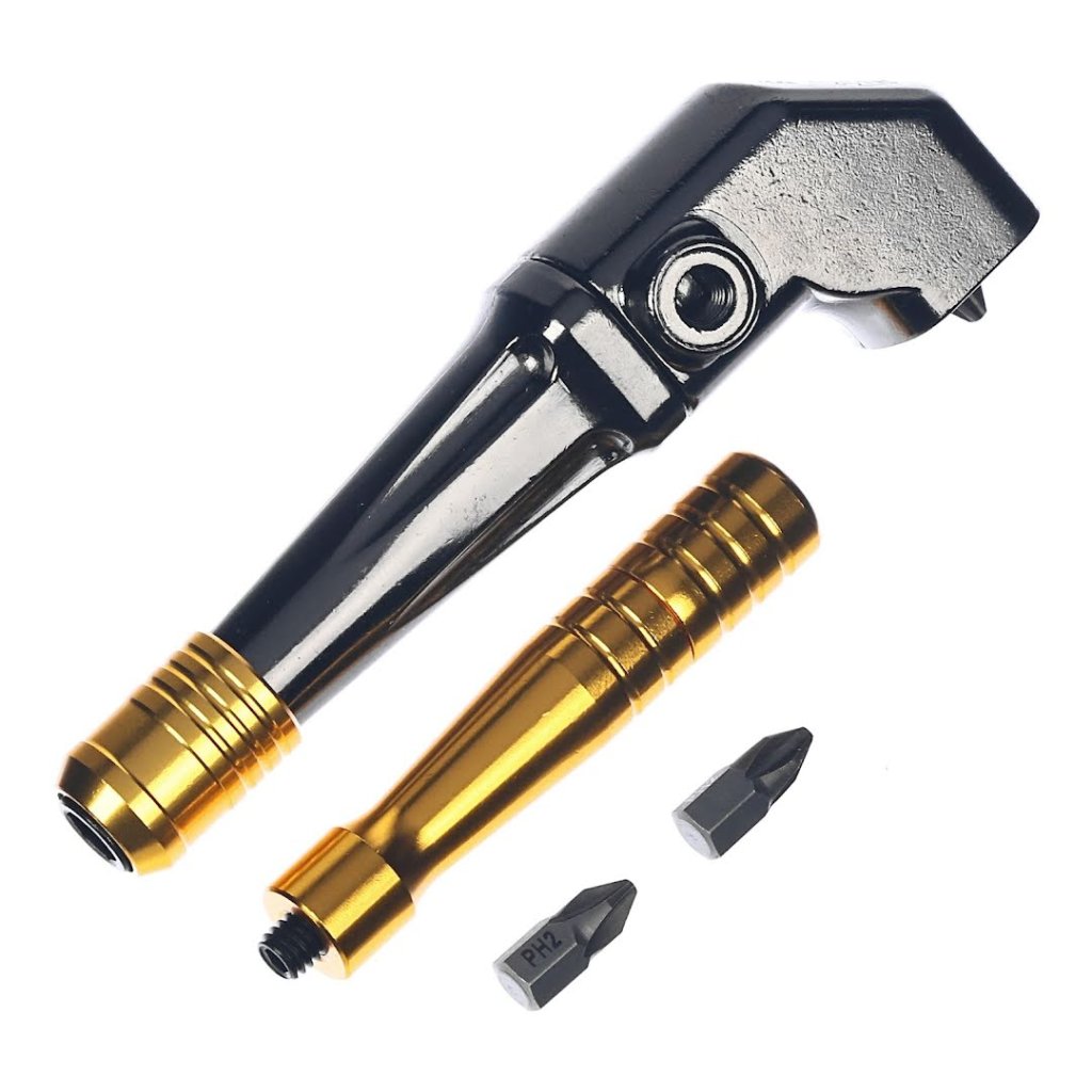 Pravoúhlý adaptér na vrtačky SK11, model ADK-003, je navržen pro přesné zašroubování šroubů ve stísněných prostorech pod úhlem 90 stupňů. S kompaktními rozměry 33 mm na šířku, je ideální pro instalaci truhlářských kování a závěsných skřínek. Tento nástroj se vyznačuje vysoce odolným převodovým systémem pro dlouhou životnost a magnetickým sklíčidlem, které umožňuje snadnou obsluhu v omezených prostorech. Rychloupínací sklíčidlo na jeden dotek zvyšuje pracovní efektivitu tím, že umožňuje rychlé připevnění k elektrickým nástrojům bez nutnosti odstraňování bitů.
