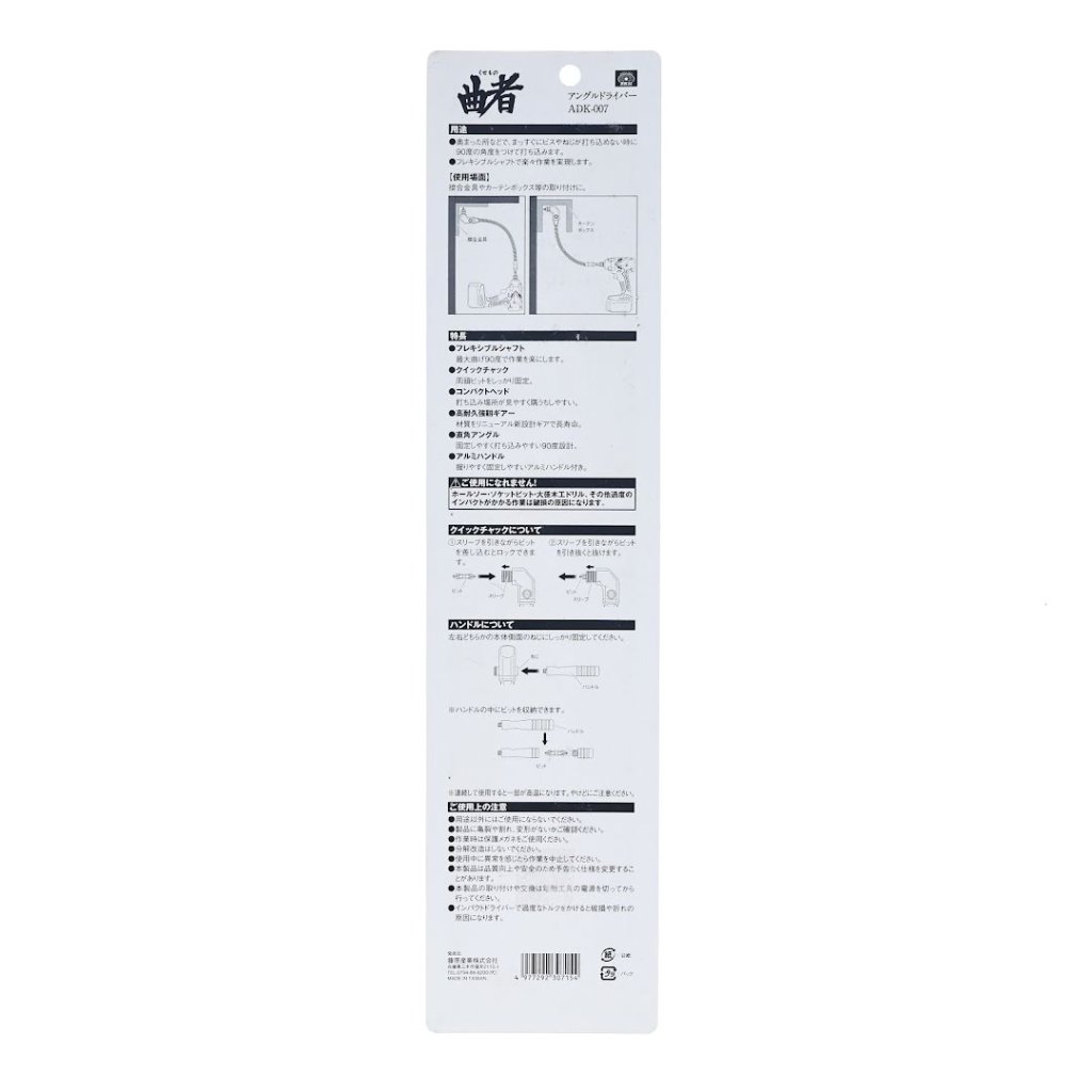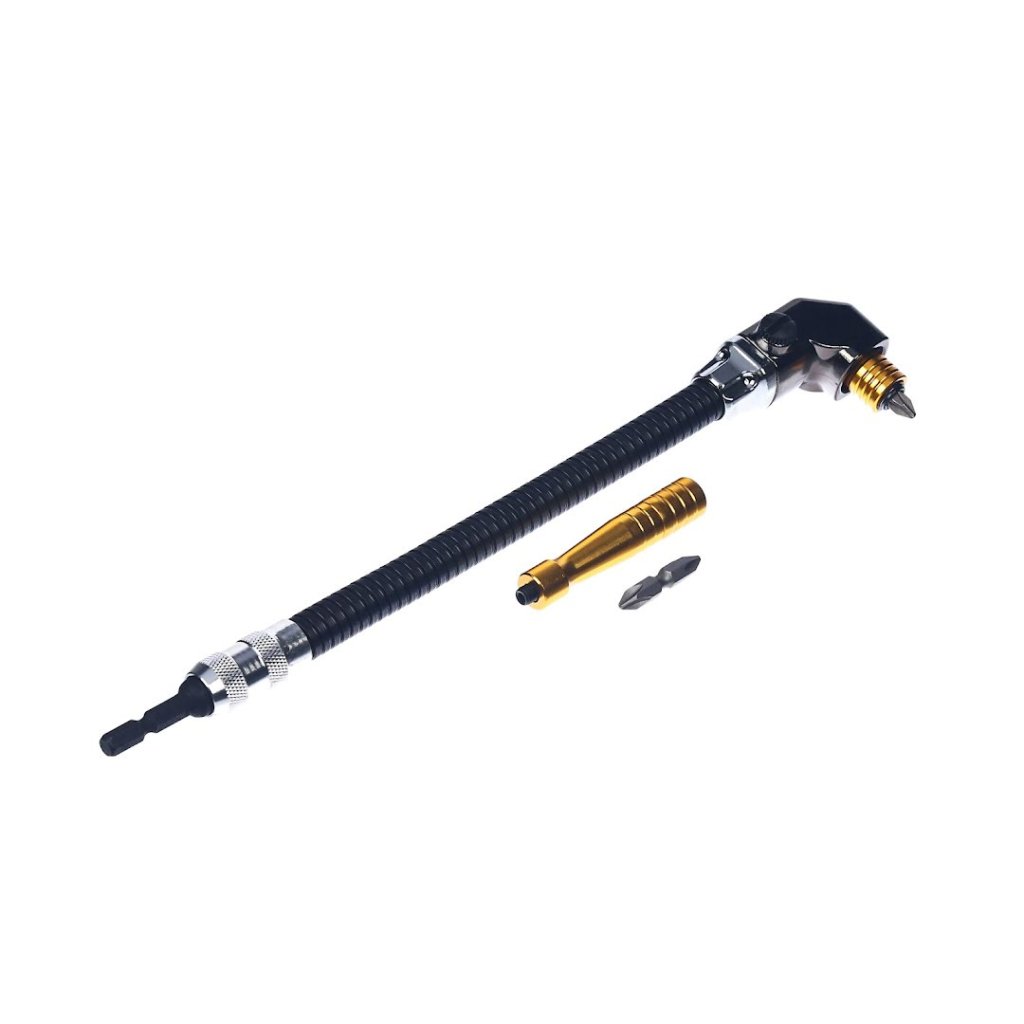 Flexibilní nástavec SK11, model ADK-007, je všestranný nástroj navržený pro přesné instalační úkoly, jako je montáž nábytku. Díky kompaktní hlavě pro lepší viditelnost a snadný přístup ve stísněných prostorech umožňuje vkládání šroubů pod úhlem 90 stupňů. Rychloupínací sklíčidlo zvyšuje efektivitu tím, že umožňuje připevnění bez vyjímání bitů z elektrického nářadí. Navíc je nástroj vybaven flexibilní hřídelí a hliníkovou rukojetí pro snadné ovládání a bezpečný provoz.