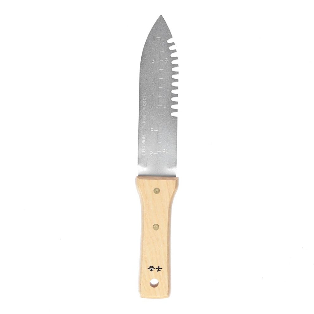 Zahradní lopatka SENKICHI, model SGT-26, je všestranný nástroj pro kopání, přesazování, řezání kořenů a pletí. S rozměry 50 x 310 x 20 mm a hmotností 200 g je kompaktní a snadno ovladatelná. Její kalená čepel zajišťuje odolnost, zatímco zoubkované ostří je obzvláště užitečné pro efektivní řezání kořenů.