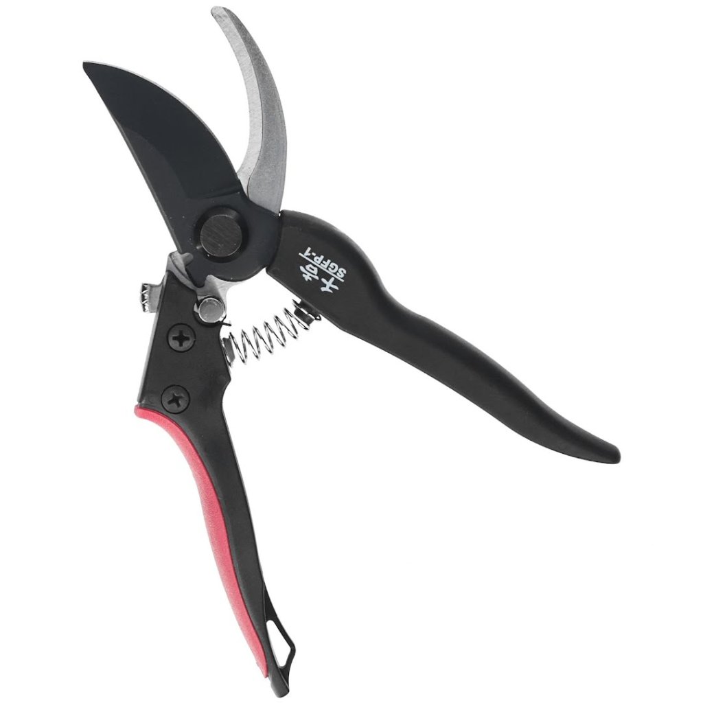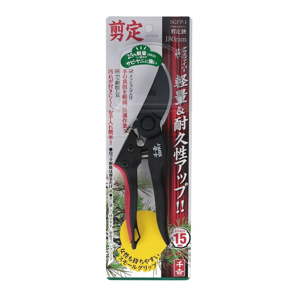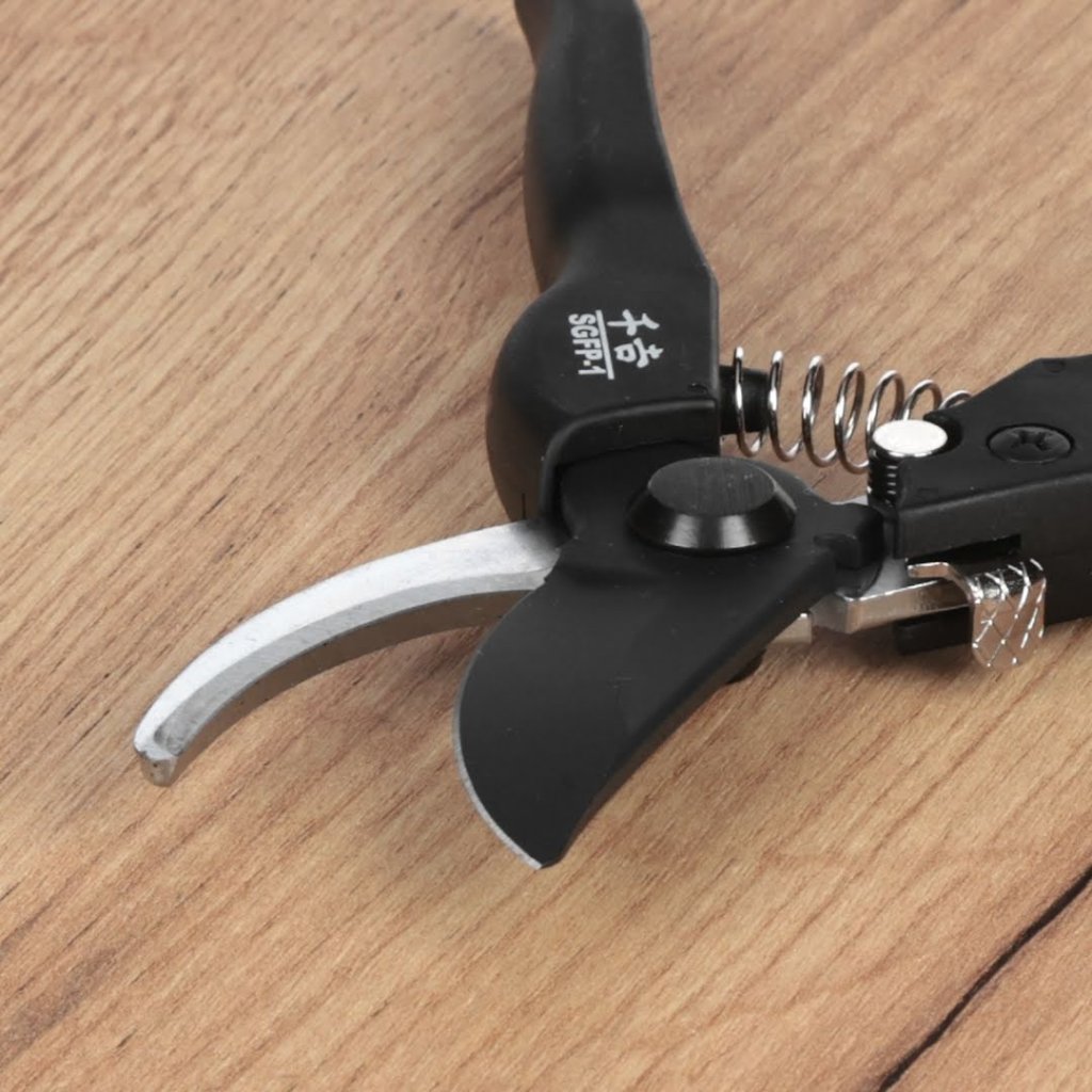 Nůžky od značky SENKICHI, model SGFP-1, jsou odborně navrženy pro stříhání a úpravy rostlin. Jejich lehká rukojeť ze sklolaminátu snižuje fyzickou námahu přibližně o 25 % ve srovnání s předchozími modely. Čepel s fluorovou povrchovou úpravou odolává pryskyřici a nečistotám. Jednodotykový zámek rovněž zajišťuje bezpečné a rychlé uložení.