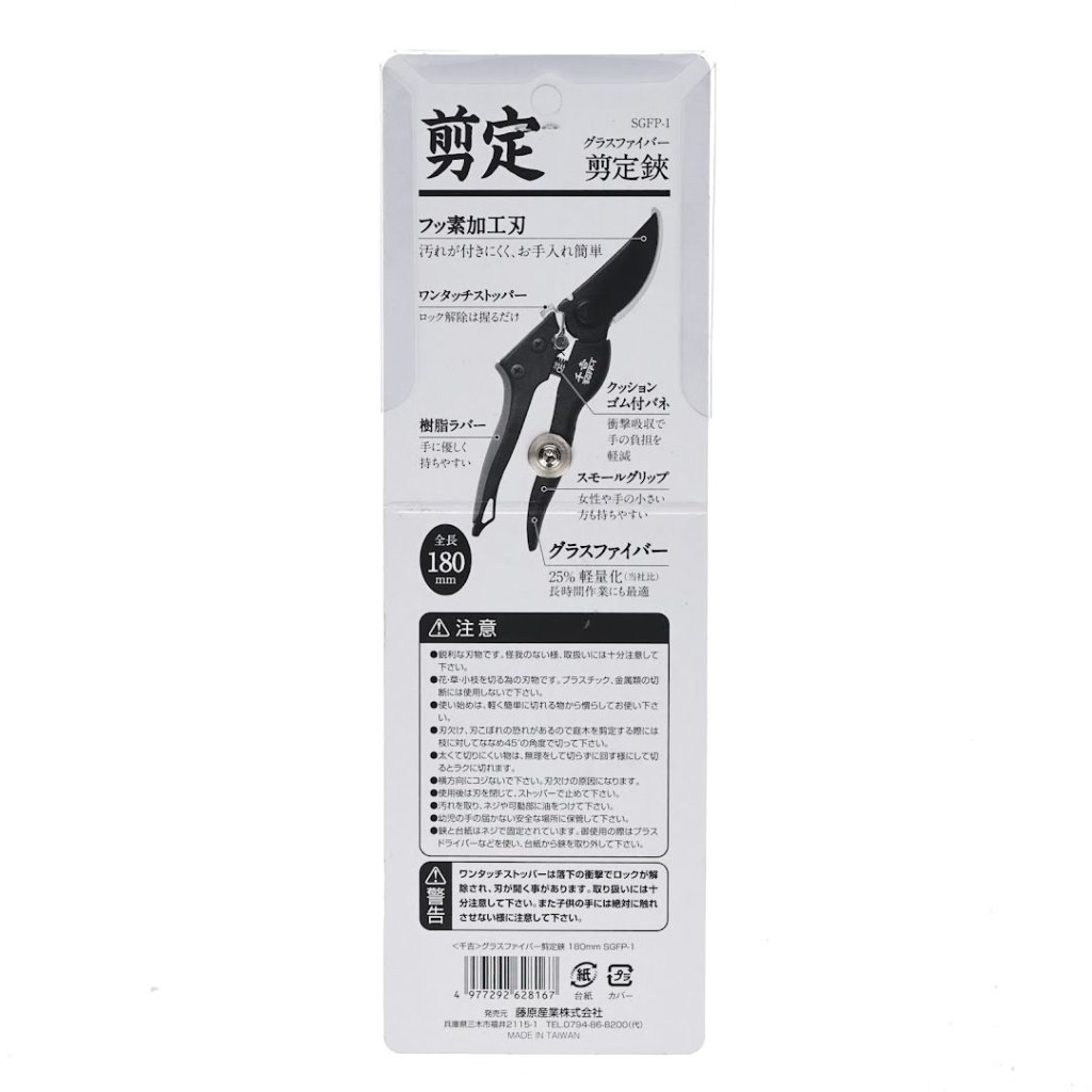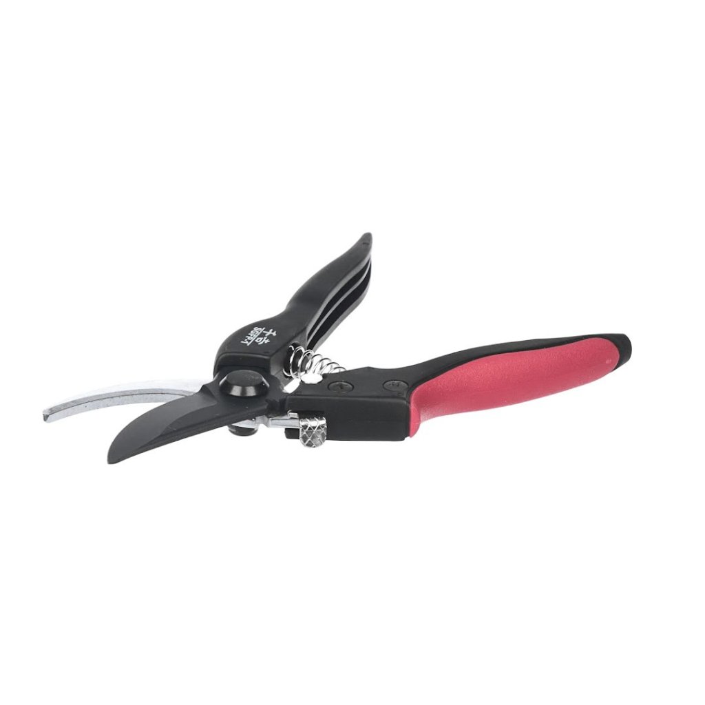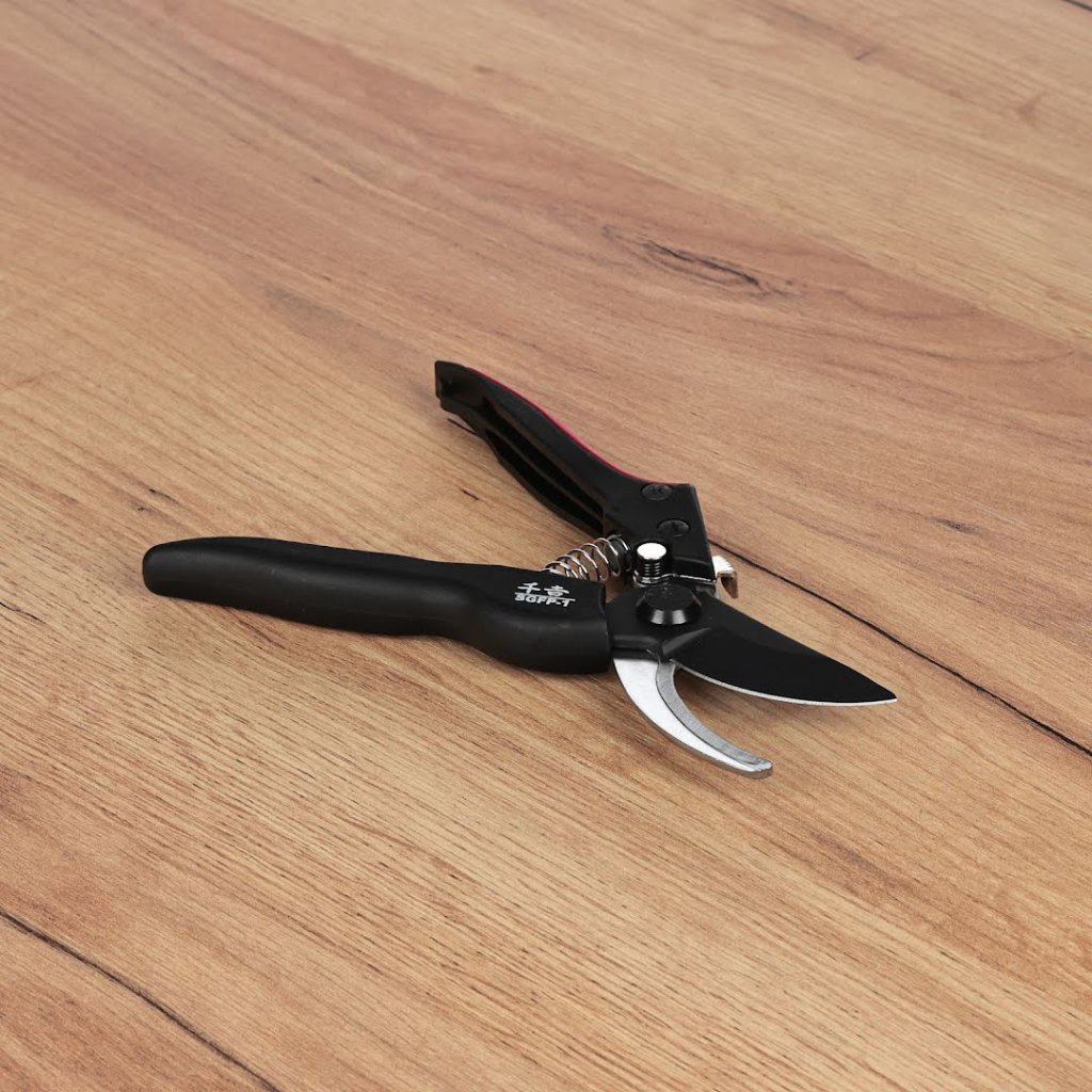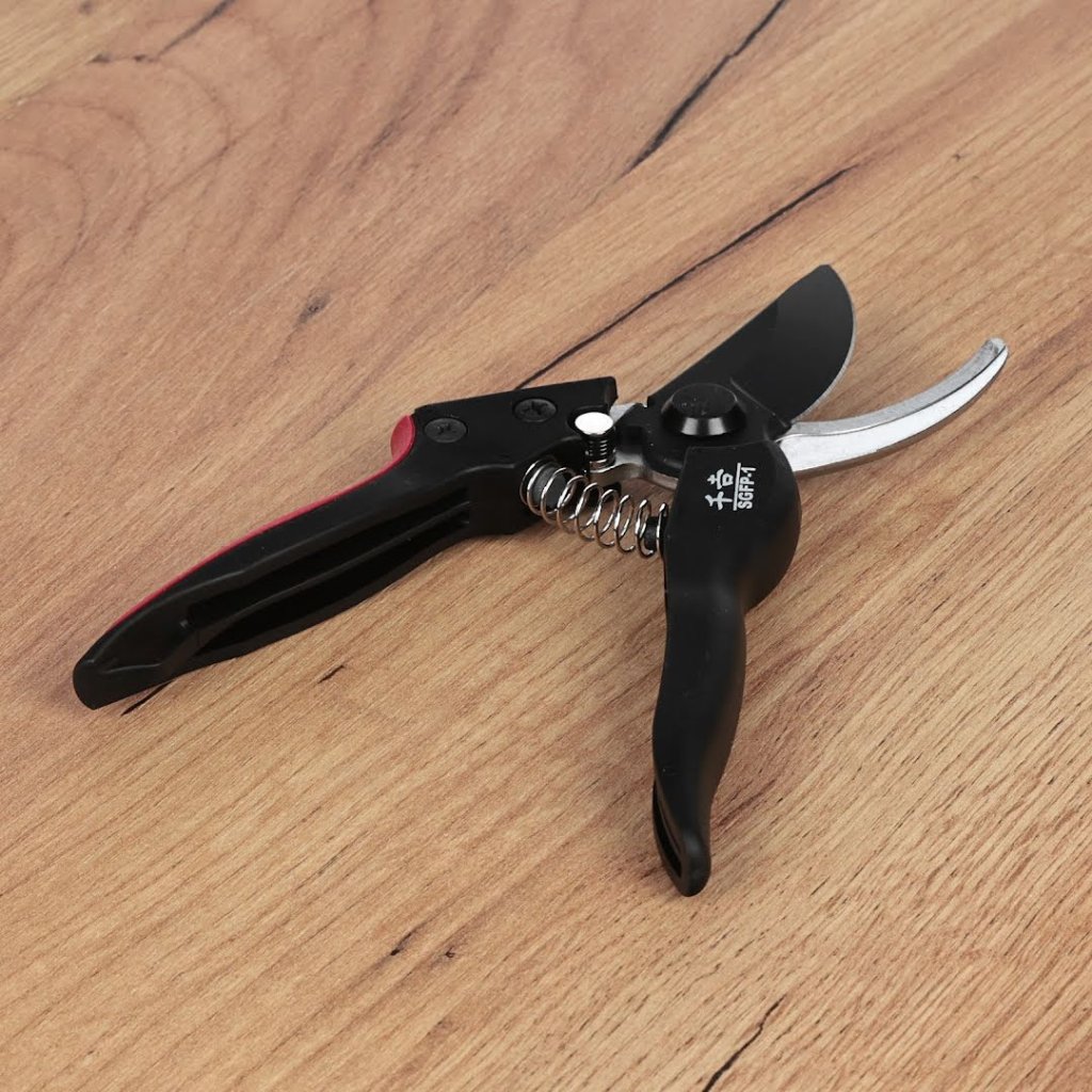 Nůžky od značky SENKICHI, model SGFP-1, jsou odborně navrženy pro stříhání a úpravy rostlin. Jejich lehká rukojeť ze sklolaminátu snižuje fyzickou námahu přibližně o 25 % ve srovnání s předchozími modely. Čepel s fluorovou povrchovou úpravou odolává pryskyřici a nečistotám. Jednodotykový zámek rovněž zajišťuje bezpečné a rychlé uložení.