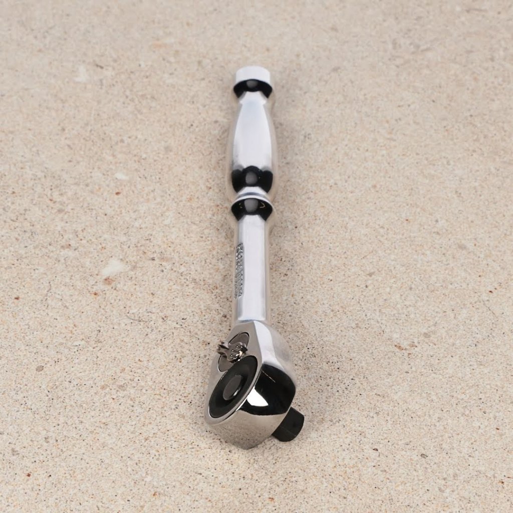 Chromovaná rukojeť SK11, model SRH2CH, je ideální pro efektivní utahování a povolování šroubů a matic. S velikostí pohonu 6,35 mm a kompaktní šířkou hlavy 22 mm je tato ráčnová rukojeť navržena pro práci v omezených prostorech, kam se tradiční nástroje nedostanou. Chlubí se odolným 72zubovým ozubeným kolem, které umožňuje přesný provoz s 5stupňovým obloukem. Kompaktní rozměry nástroje napomáhají ke snadné manipulaci.