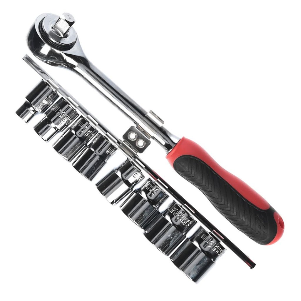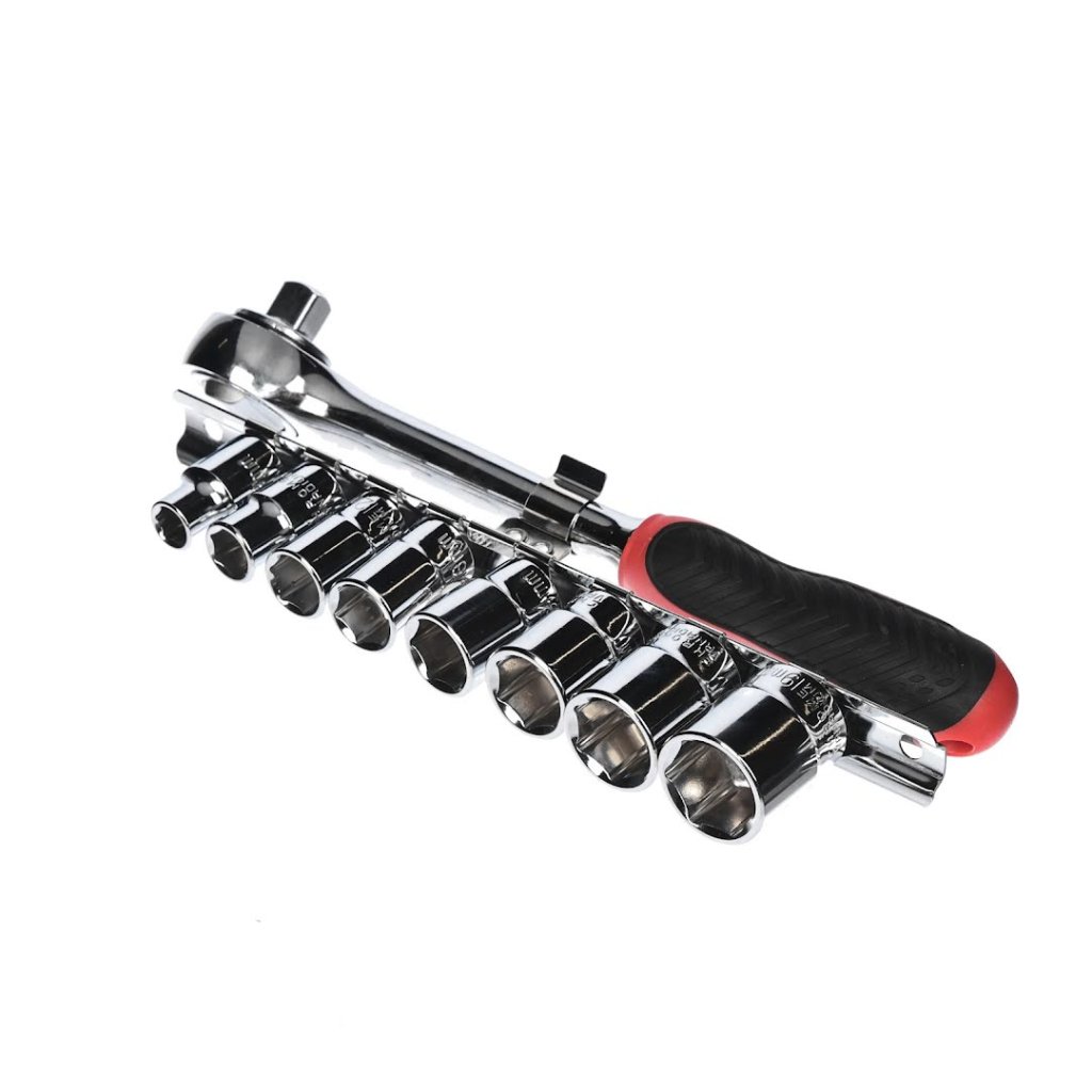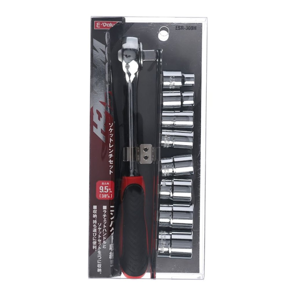 Ráčna v sadě s nástrčnými klíči E-VALUE - 9,5 mm - 9ks - ESR-309H