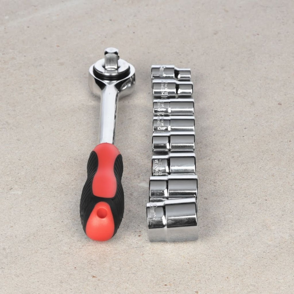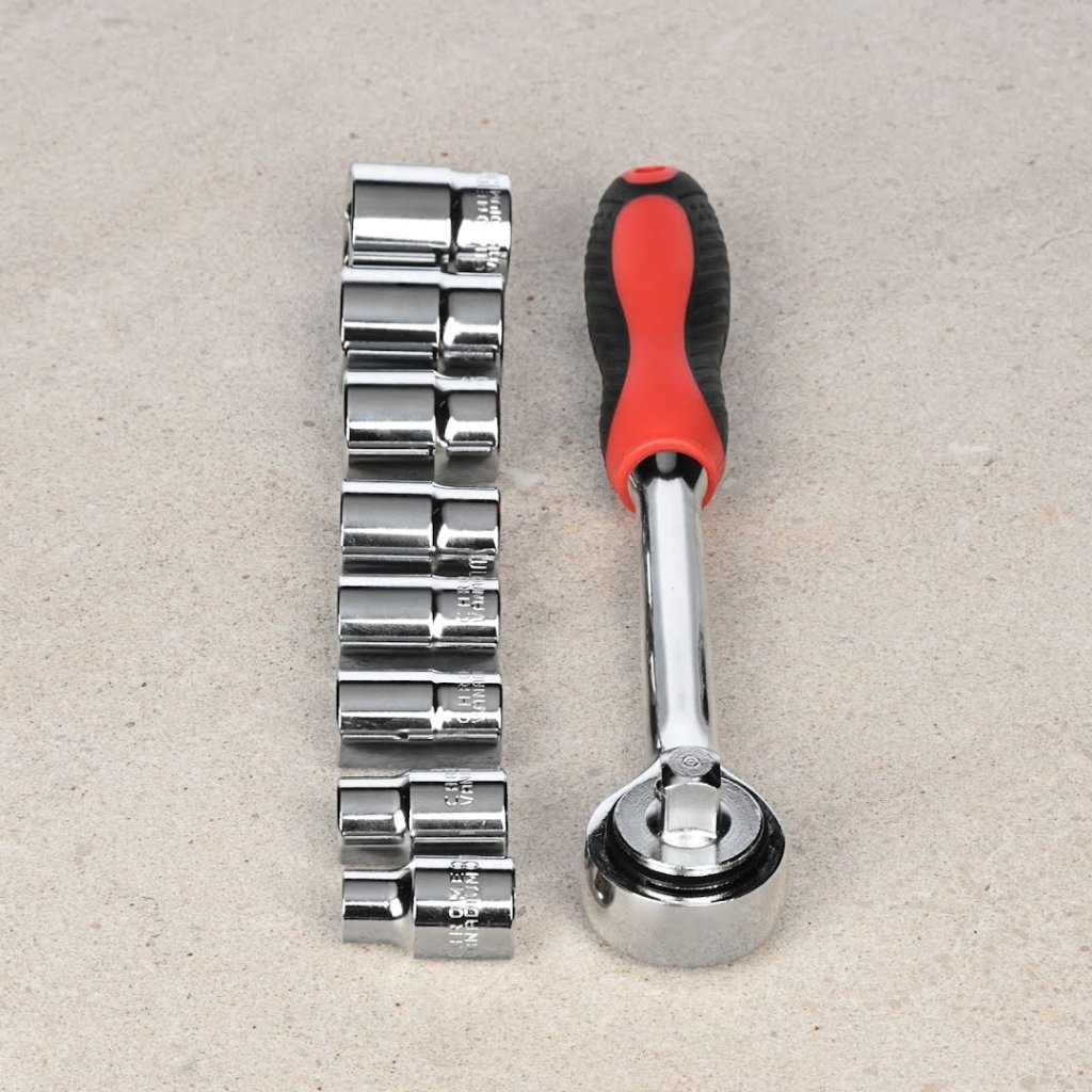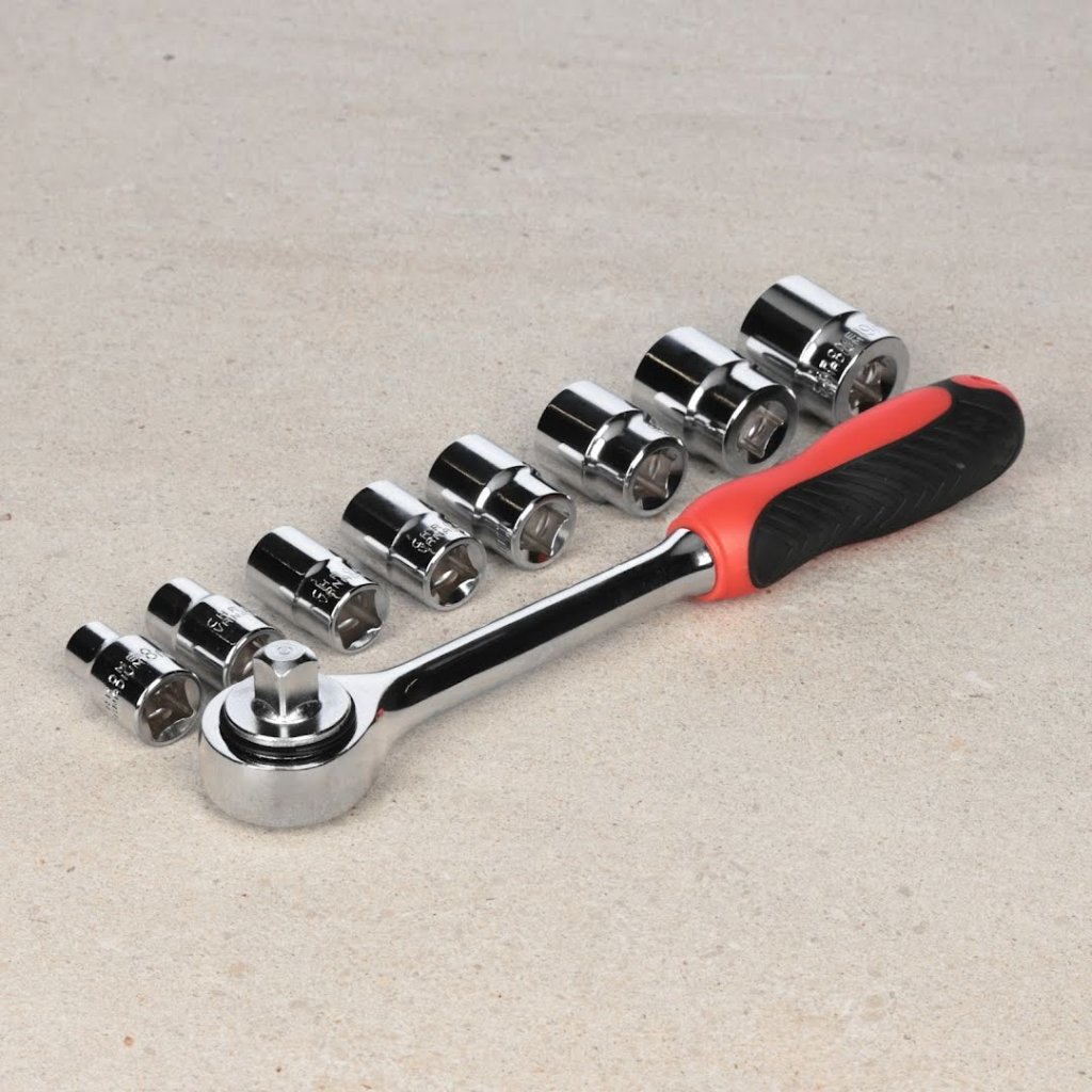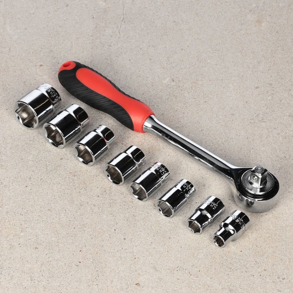 Ráčna v sadě s nástrčnými klíči E-VALUE - 9,5 mm - 9ks - ESR-309H