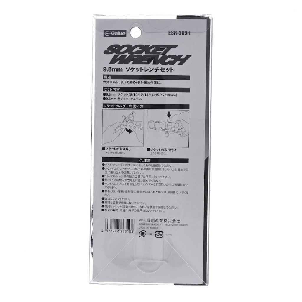 Sada E-VALUE, model ESR-309H, je univerzální gola sada pro efektivní utahování a povolování šestihranných šroubů a matic. Tato kompaktní sada obsahuje ráčnovou rukojeť a nástavce, vše uloženo v přenosném designu. Velikost pohonu 3/8 palce (9,5 mm) je ideální pro různé úkoly.