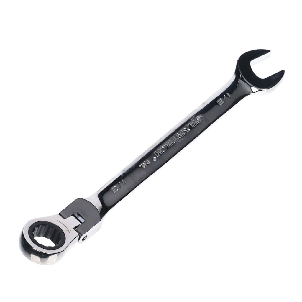 Stranový klíč s ráčnou SK11, model MSFR-12, je univerzální nástroj navržený pro efektivní práci v úzkých prostorech. Tento klíč disponuje flexibilním mechanismem hlavy, který umožňuje nastavení od 0 do 180 stupňů. Je vybaven 72-zubovým mechanismem, který nabízí 5-stupňový oblouk pro přesné utahování a povolování šestihranných šroubů a matic.